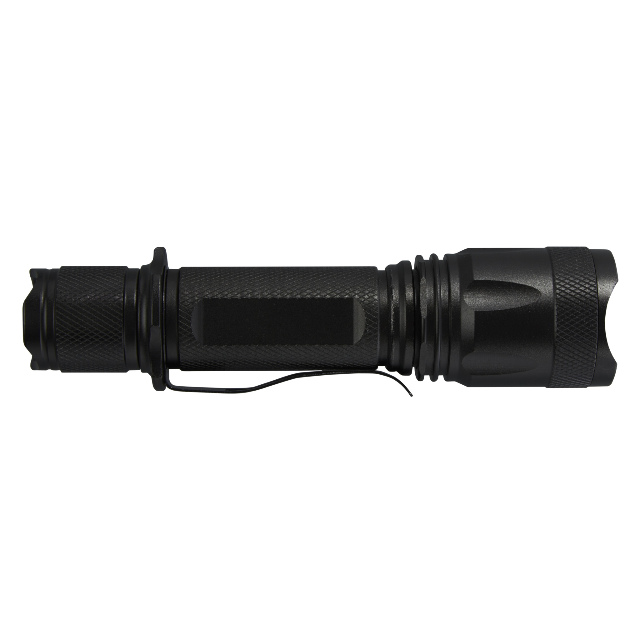 Never run out of battery with this rechargeable high power tactical aluminium flashlight. The solid black aluminium alloy casing offers a tactical look, with an impact resistance of 1 metre. The flashlight features a belt clip for easy carrying, and it is splash-proof with a IPX4 rating. The 5W LED generates 300 lumen for up to 3 hours, and has a beam distance of 200 meters with 5 different light modes: high, medium, low, strobe and SOS. The high power comes from a built-in lithium battery with a capacity of 2000mAh. The flashlight has a size of 14.5 x 3.4 cm and only weighs 170 gram. Comes with an instruction manual and is packed in a recycled cardboard gift box with a size of 17.5 x 6 x 4 cm. Laser engraving on the aluminium body is recommended.