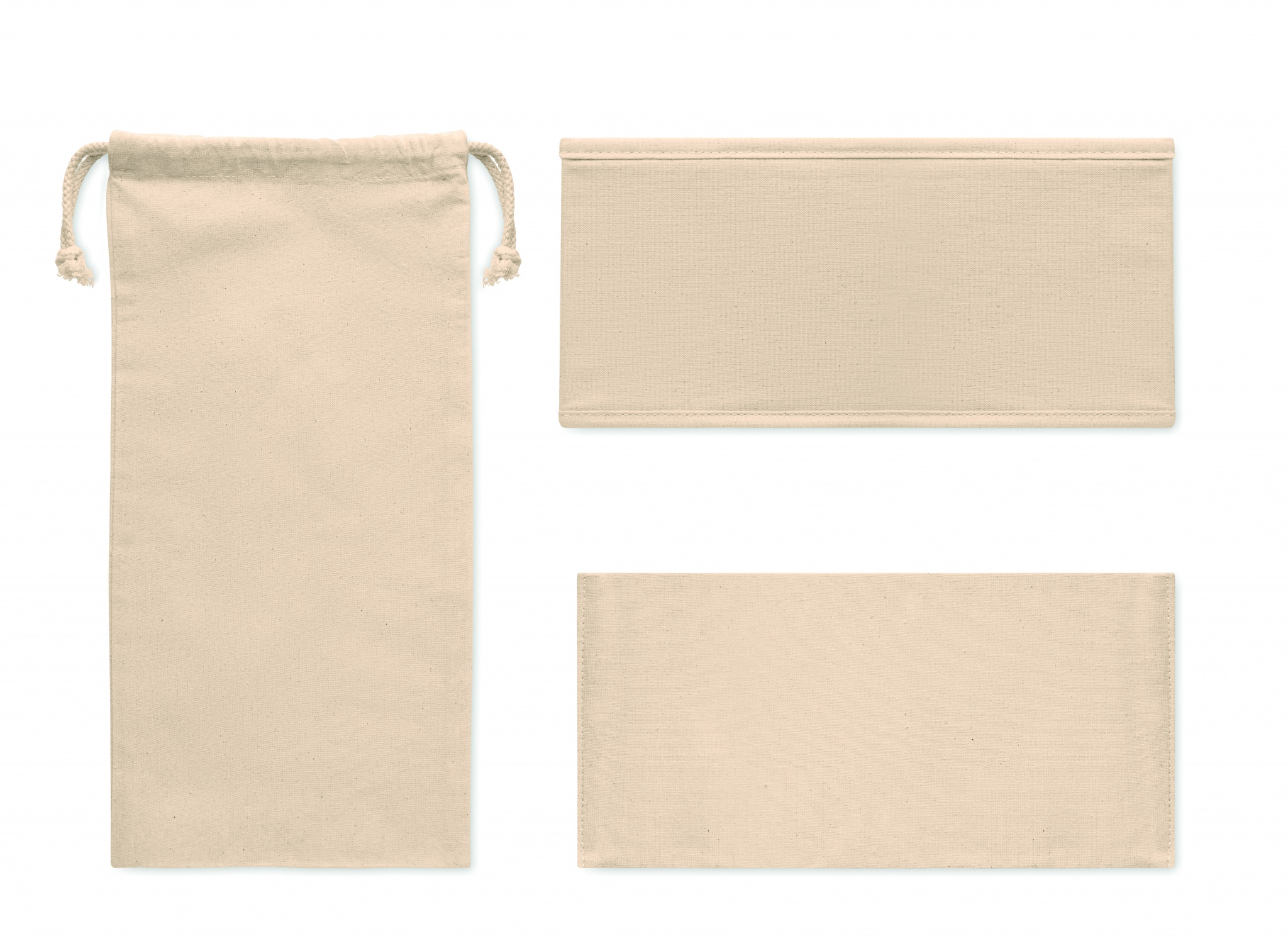 Medium foldable accessories or storage box in cotton (220 gr/m²). Presented in cotton (140 gr/m²) drawcord pouch.