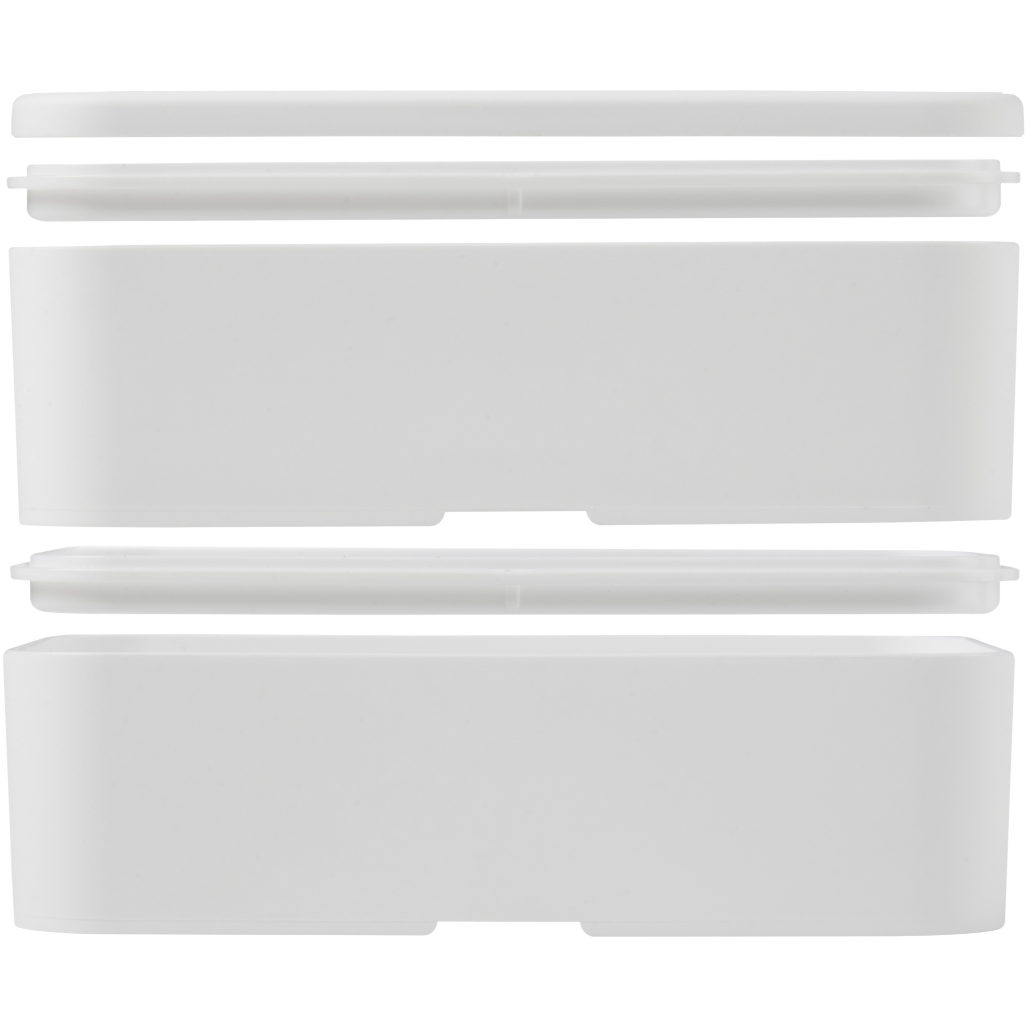 The MIYO Pure double layer lunch box is using Biomaster technology, which provides protection against the growth of harmful micro-organisms on the surfaces of the lunch box, which is effective for the lifetime of the product without affecting its recyclability. The lunch box offers two 700 ml capacity bases. The lid is held in place with a band made from recycled PET. Microwave safe, dishwasher safe, BPA-free and fully recyclable. Made in the UK and packed in a recycled PE plastic bag. Fully customise your MIYO by adding individual recipient names to the lid – please contact us for more details.