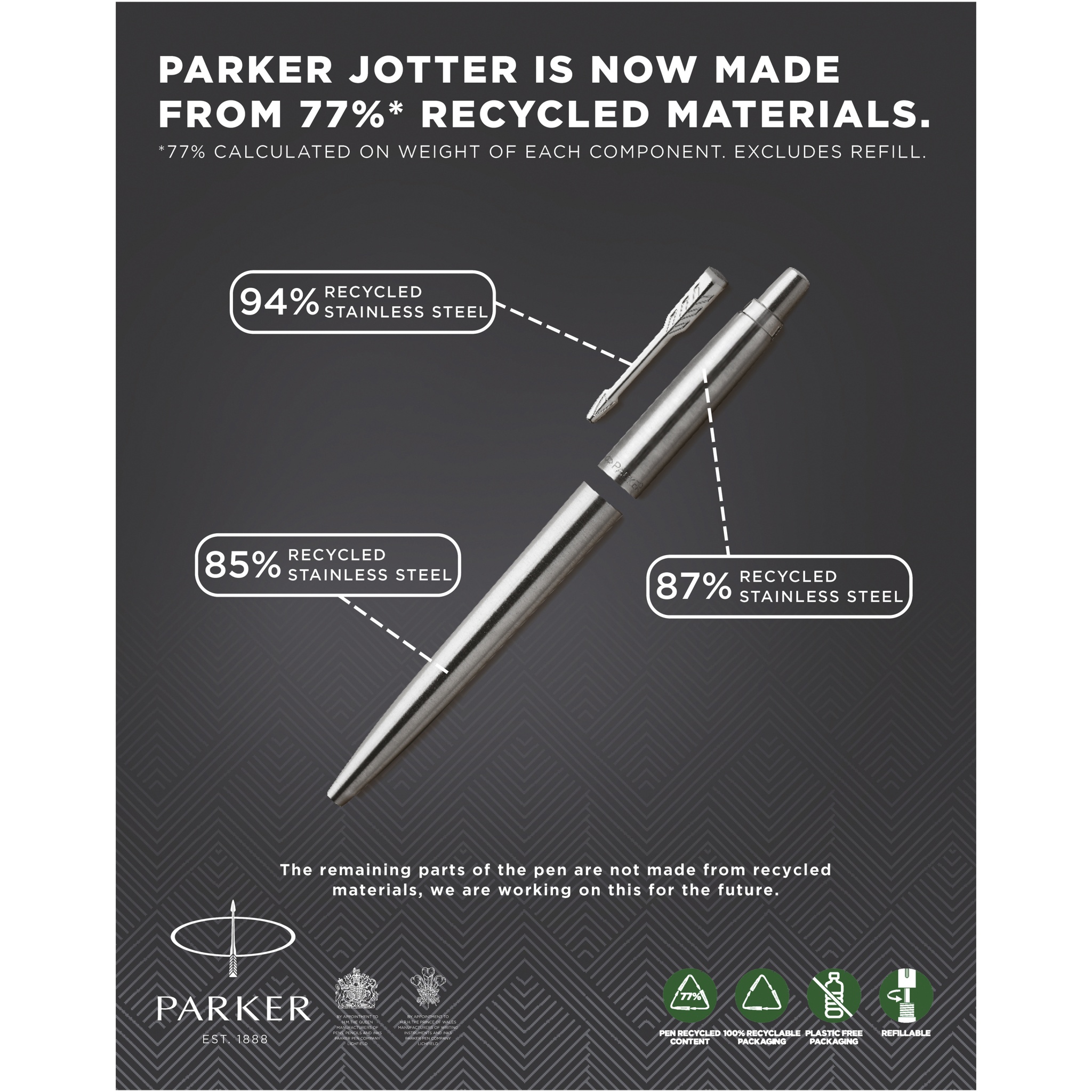 Jotter stands as an authentic design icon of the last 60 years. With covetable colours and a distinctive shape Jotter remains Parker's most popular pen, recognizable down to its signature click. Incl. Parker gift box. Delivered with patented QuinkFlow ballpoint refill. Exclusive design.