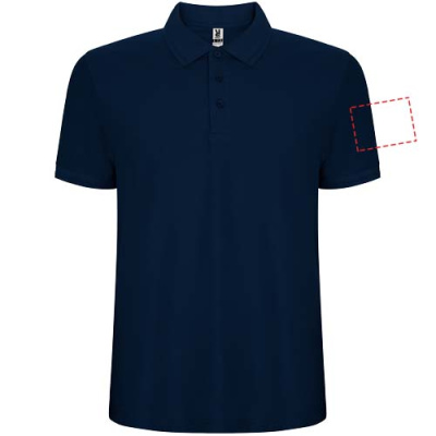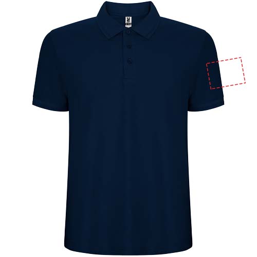 Short-sleeve polo shirt. Collar and sleeves edging in 1x1 ribbed fabric with detail. 3-button placket. Reinforced covered seams in collar. Side slits and optional pocket. Removable label. Anti-pilling treatment.
