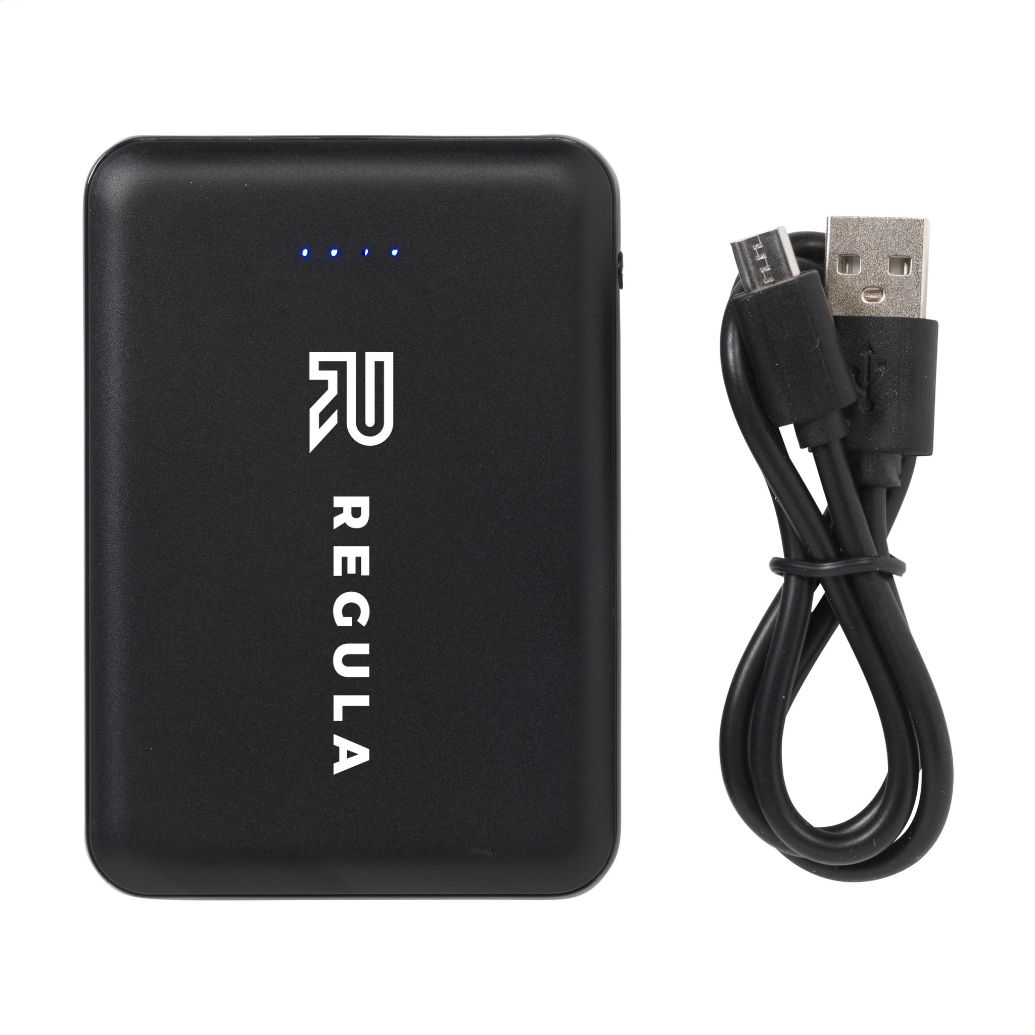 Small, light and very powerful power bank with built-in lithium polymer battery (5000 mAh). The casing is made from recycled ABS plastic. Input 5V/2A. Dual output: 2 x 5V/2A. Includes USB-C charging cable and user manual. RCS-certified. Total recycled material: 45%. Each item is individually boxed.