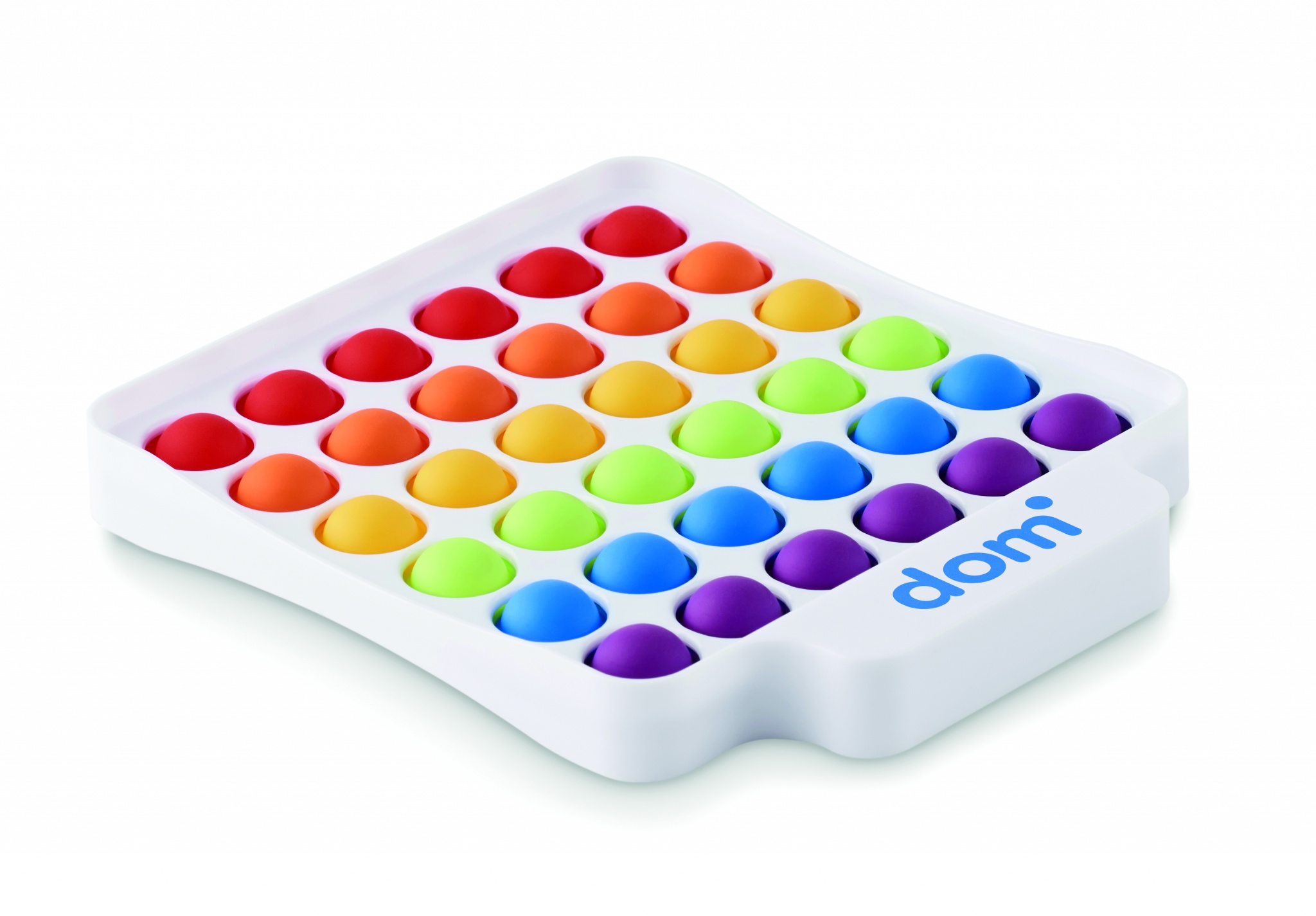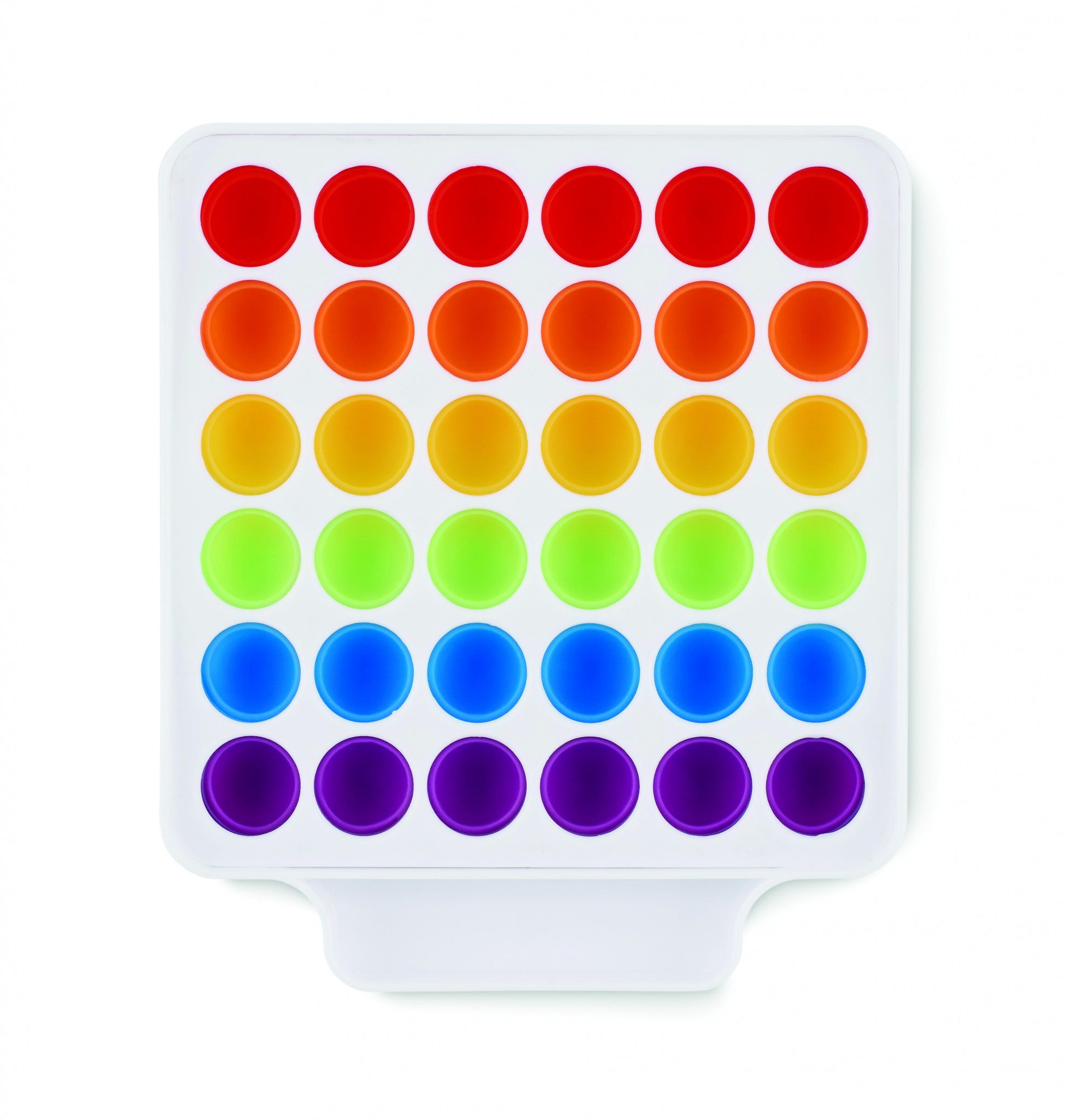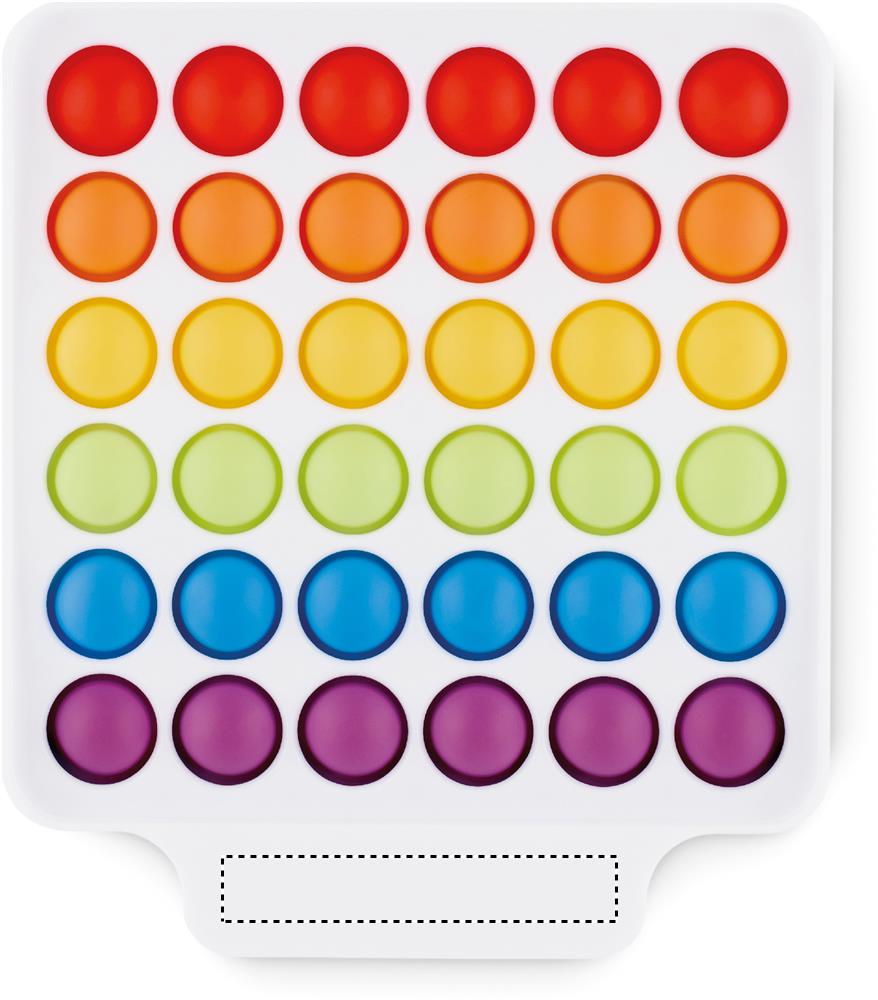 Pop it fidget toy made of coloured silicone and in ABS case with popping bubbles.