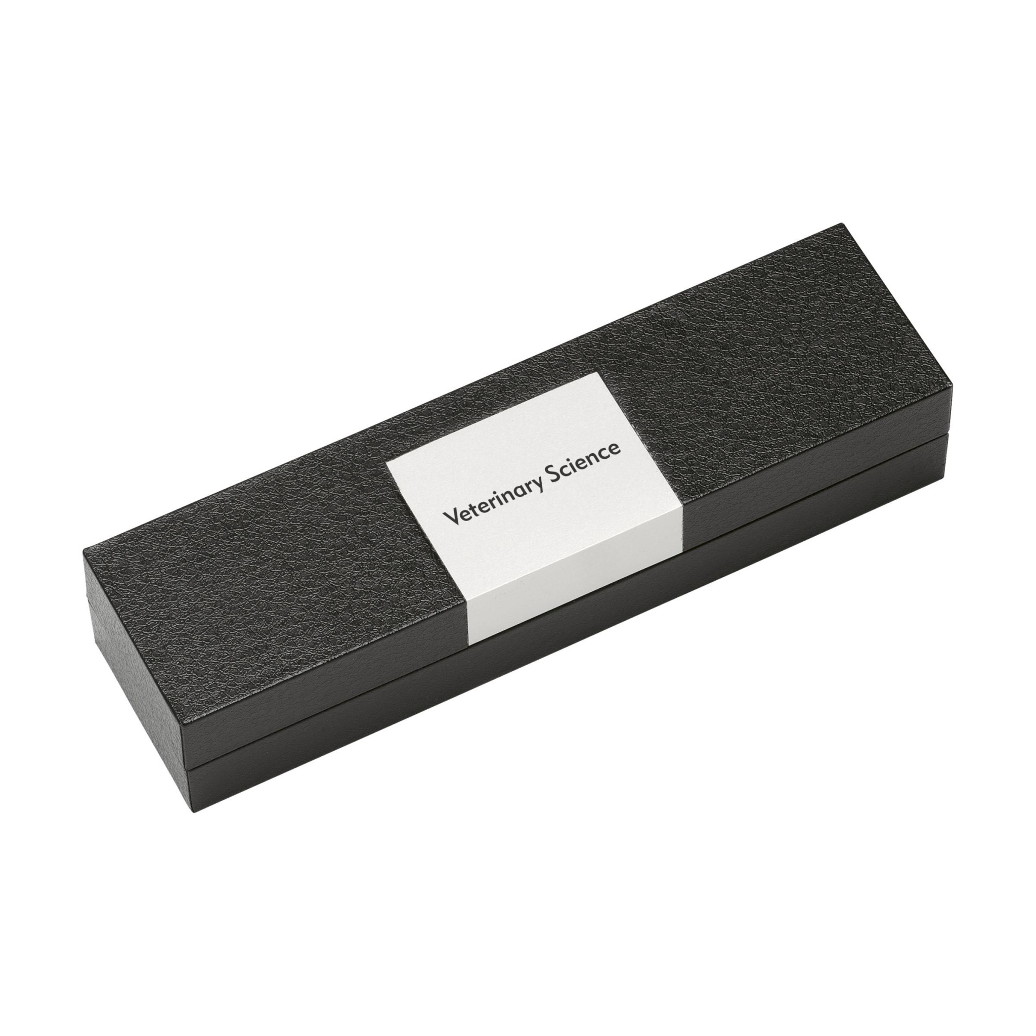 Blue ink, glossy ballpoint pen with twist-action system and metal clip/top, point and barrel ring. In a case.