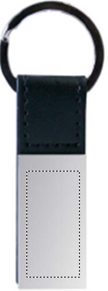 PU key ring with square metal plate.