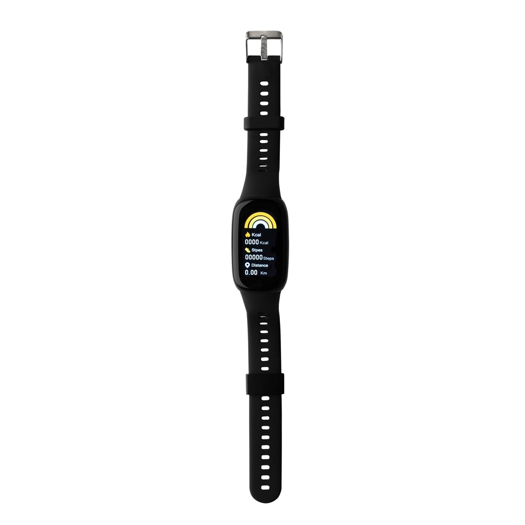The tracker that helps you find more energy and makes you feel at your best. The tracker is waterproof (IP67) with comfortable recycled TPU wristband to wear the bracelet both day and night. With easy to use large 1.47” Full touch OLED colour screen. Made with RCS (Recycled Claim Standard) certified recycled TPU armband and ABS frame. Total recycled content: 28% based on total item weight. RCS certification ensures a completely certified supply chain of the recycled materials. Including free APP. BT5.0. Functions: Message reminder, Intelligent alarm clock, Clock, Step count, Distance, Calories, Heart rate & Blood pressure monitoring, Blood oxygen monitoring, Multi-sport mode (11) ,Walking, Running Mode, Riding mode, Sit-up mode etc.), Music control, Message notifications, Sleep mode, Incoming call, Stopwatch. Start your healthier lifestyle today. Standby time of 20 days and working time up to 10 days. Packed in FSC® mix kraft packaging. Item and accessories 100% PVC free.