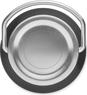 Recycled aluminium bottle with stainless steel handle lid. Leak-free. Capacity: 500 ml.