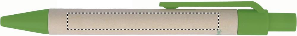 Recycled paper notebook with matching pen. Soft paper cover with pen holder. Casebound. 160 lined pages (80 sheets). Matching push button ball pen in recycled carton and biodegradable plastic. Blue ink.