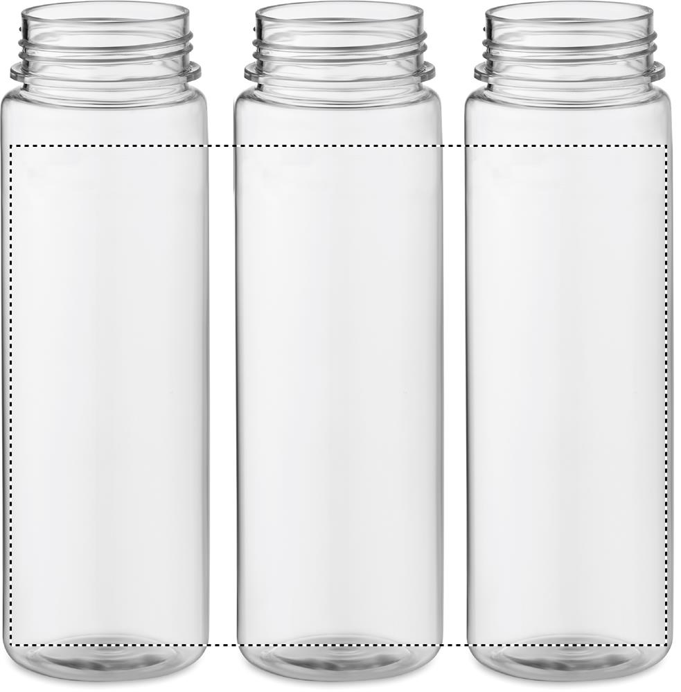 Drinking bottle in RPET and PP flip-top lid with straw. Capacity: 650ml. Not suitable for carbonated drinks.
