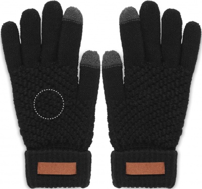 Tactile gloves for smartphone in RPET with label for printing area.