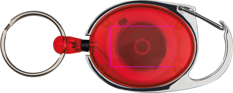 Keyring with a small snap hook, belt clip, and pull-out keyring. Your logo will be printed on the coloured plastic area.