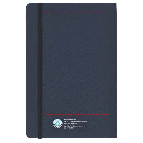 The RCS certified Skribo pen and notebook set is partly made from recycled post-consumer polyester, making the set a more sustainable choice since it helps to reduce the use of virgin raw material. Featuring a ballpoint pen with blue ink, and 80 cream coloured lined sheets with 80 g/m2 recycled paper from sustainable sources. The writing length of the pen is 1000 metres.