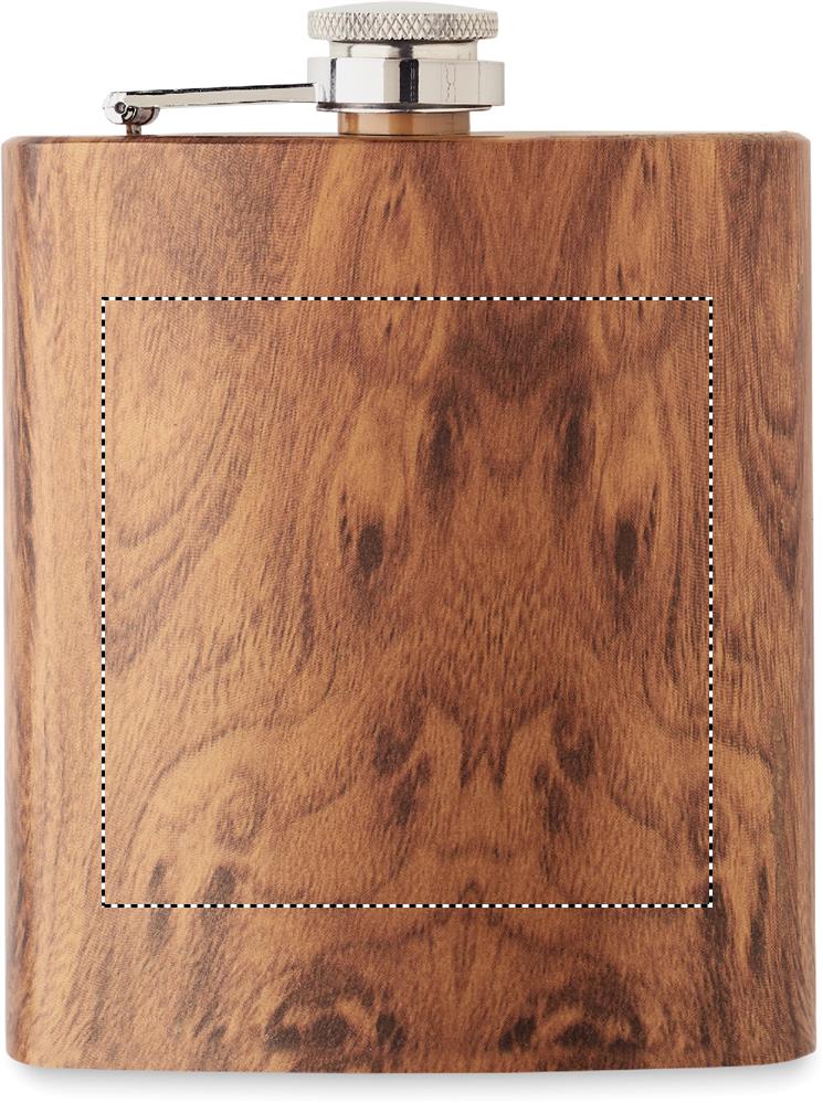 Slim hip flask in recycled stainless steel (90% recycled stainless and 10% stainless steel) with a wooden look. Capacity 190 ml.