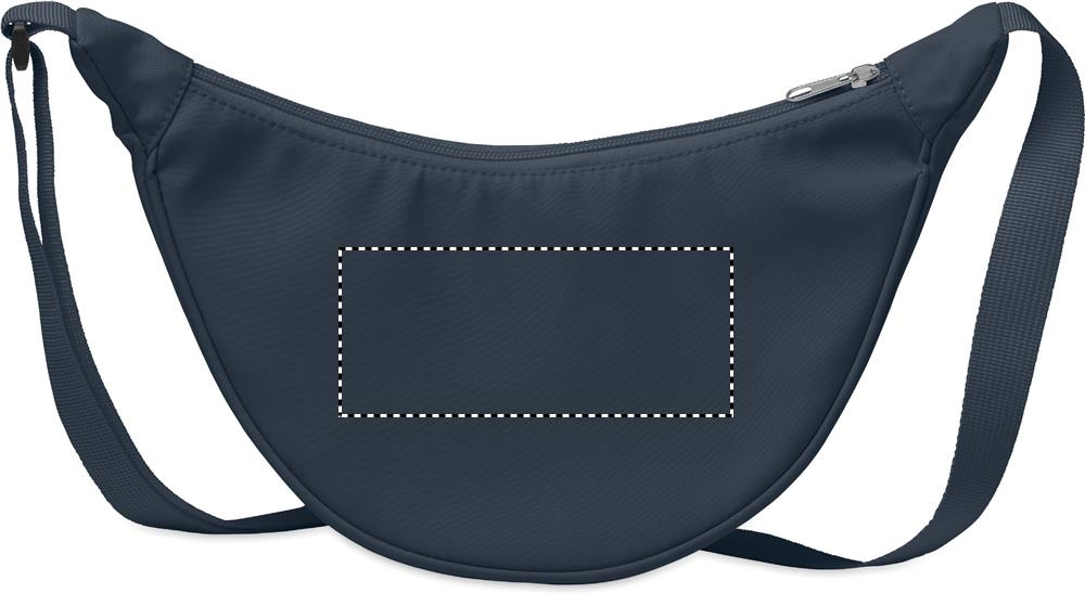 Half moon shaped cross body bag in 400D Oxford and 210D RPET lining. One main zippered pocket and 2 inside pockets.