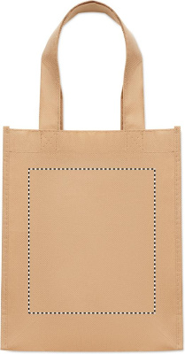 Small gift or goodie bag in RPET non-woven with short handles and gussets. 80 gr/m².