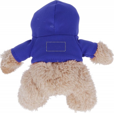Teddy bear plush wearing a hooded sweater. Sublimation print available on white item only.