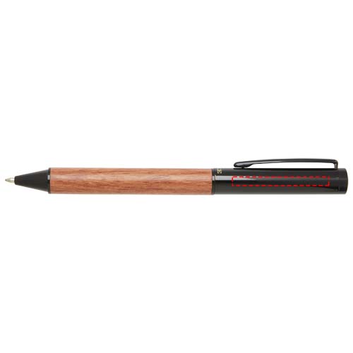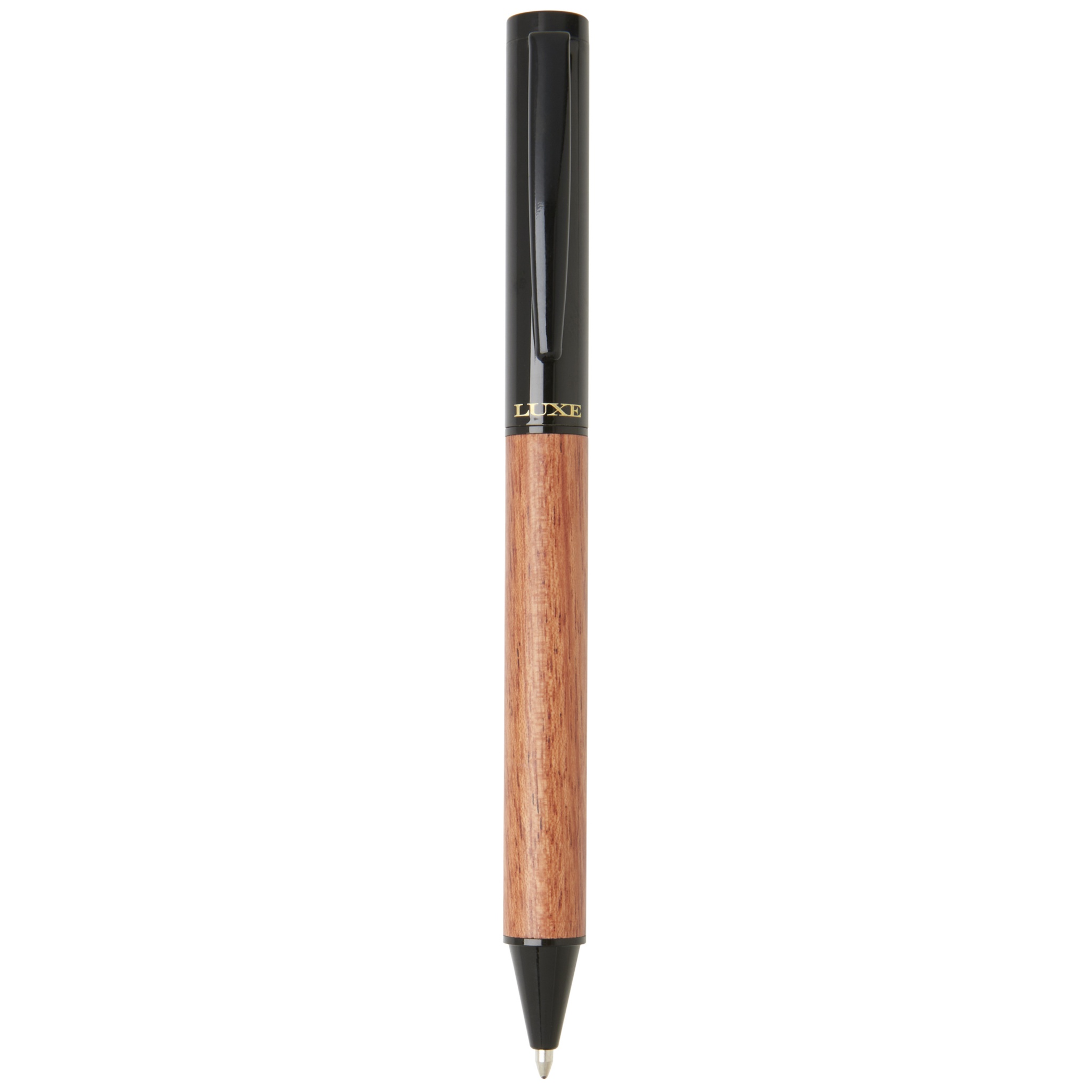 Twist action ballpoint pen with exclusive design with lower barrel made out of wood. Pre-loaded with a black ink refill and packed in a LUXE gift box.