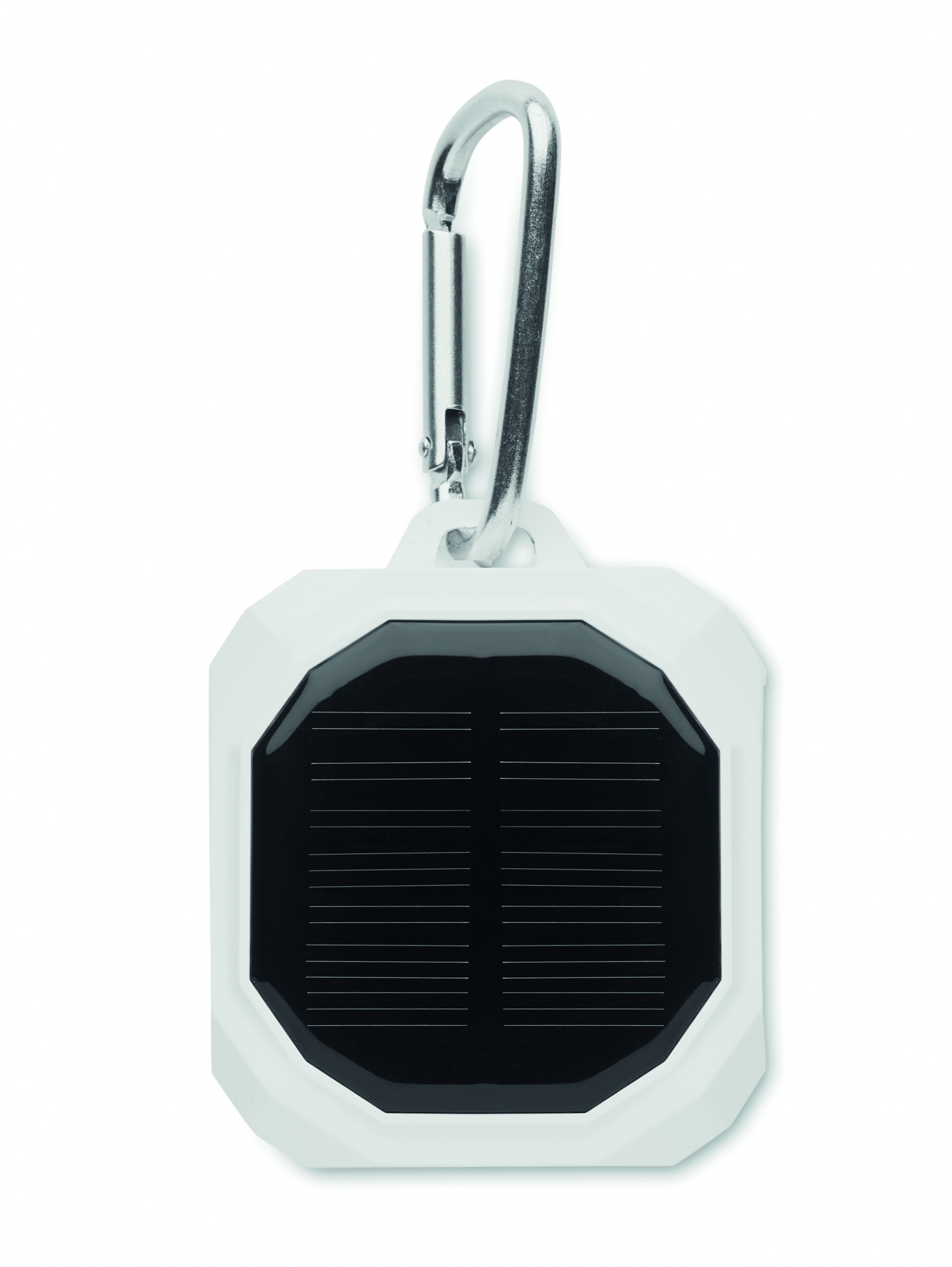 ABS True Wireless Stereo (TWS) 5.3 wireless earbuds with microphone and carabiner. 30 mAh battery. Playing time approx. 4 hours. It has a solar charging battery. Auto-pairing. Including a Type C charging cable and a 200 mAh charging station.