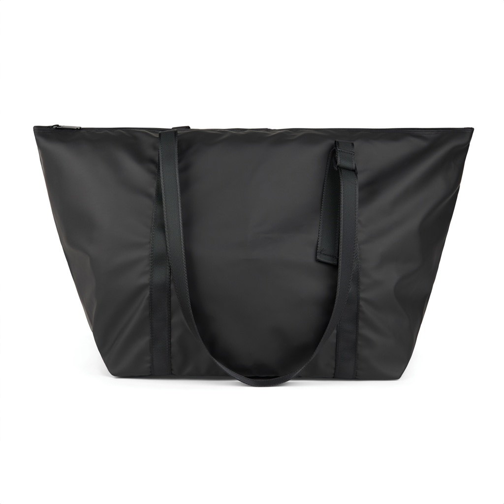 A perfect travel companion, this weekend bag is crafted from super lightweight GRS certified polyester with a sleek PU coating. Simply fold it and secure with the clever strap and buckle for storing compactly when not in use. Featuring a clever outer pocket that transforms into a secure trolley sleeve that allows you to slip it over a wheeled suitcase or trolley. Featuring adjustable straps to carry by hand or over your shoulder. Smaller inner pocket for your essentials. These versatile bags are not only easy to carry but are also designed to fold and store compactly in your luggage, providing convenient extra storage without weighing you down. Certified by GRS (Global Recycled Standard), this certification guarantees that the entire supply chain of the recycled materials is certified. The total recycled content is based on the overall product weight. This product contains 52% GRS certified recycled polyester.