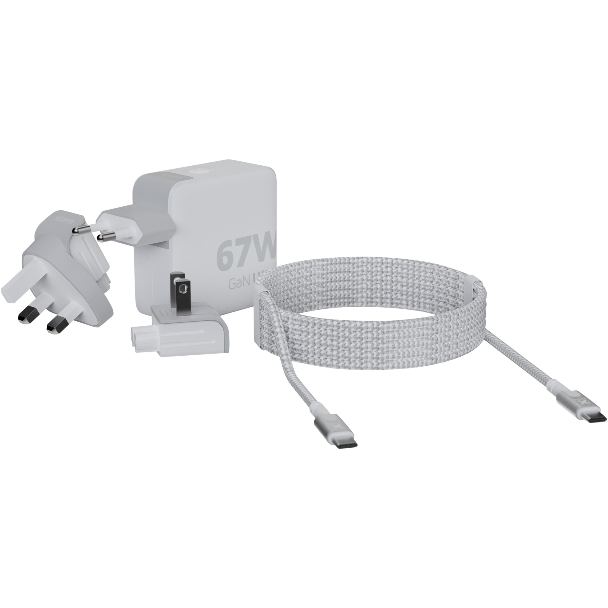 Xtorm XVC2067 GaN Ultra 67W travel charger with 100W USB-C PD cable, White