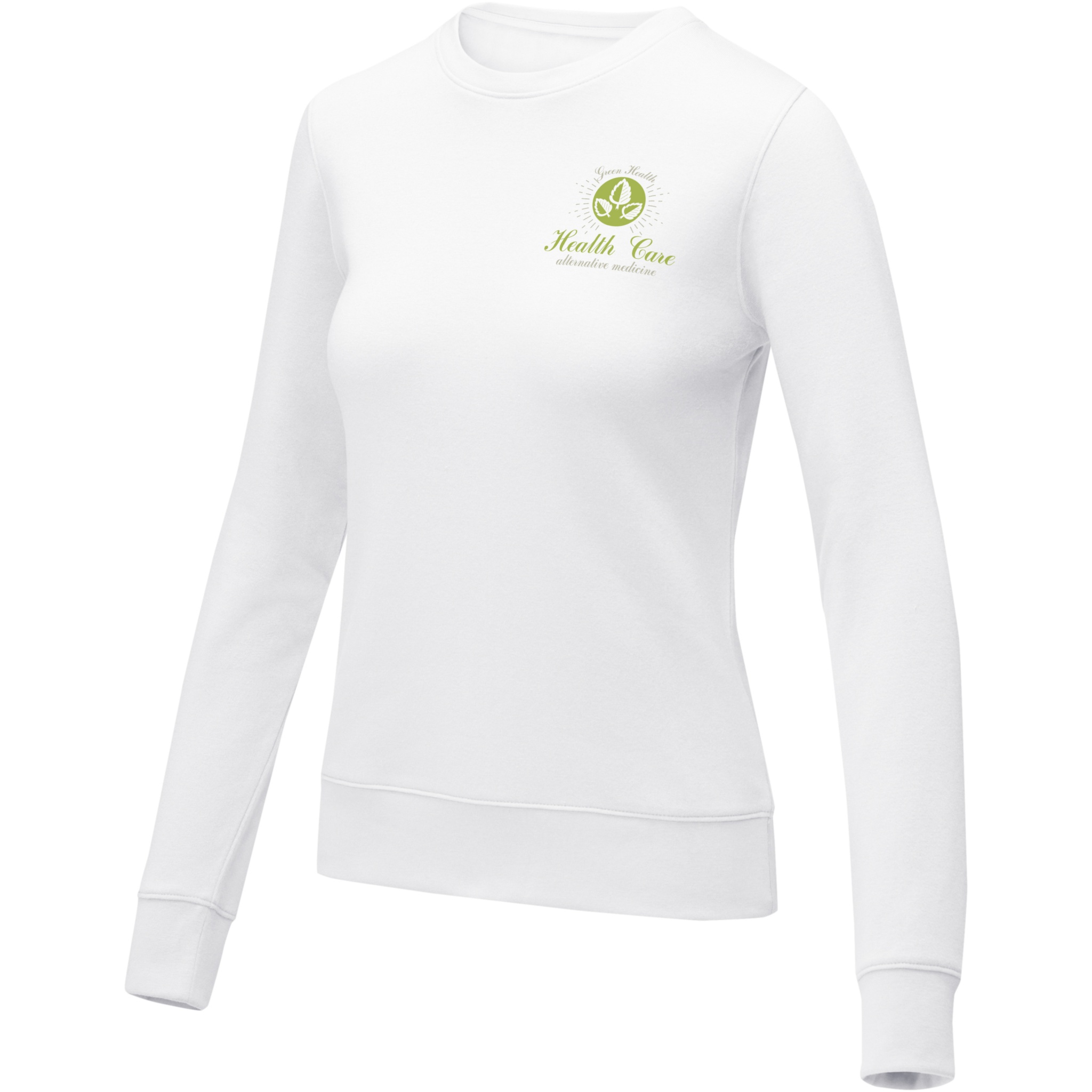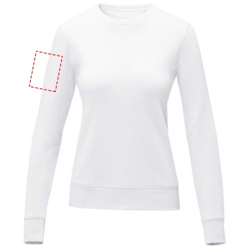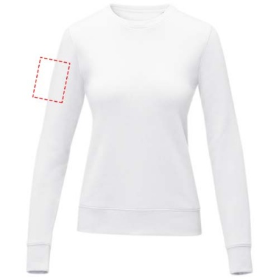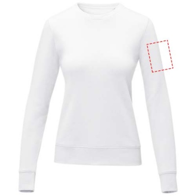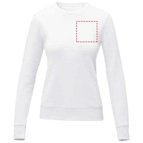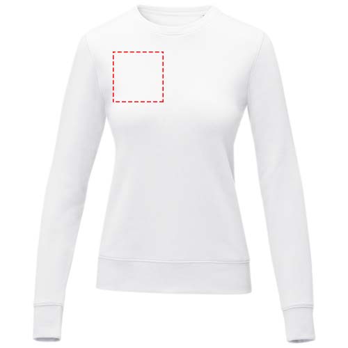 The Zenon women's crewneck sweater – combines comfort with a classic design. Made from a 240 g/m² blend of cotton and polyester. The classic crew neck design is accentuated by flat knit rib details on the collar, cuffs, and bottom hem, providing a snug fit and a touch of sophistication. Additionally, the interior custom branding options allow personalised branding or customisation inside the sweater. The brushed interior adds an extra layer of coziness, making it perfect for colder days. With its thoughtful design and quality materials, the Zenon sweater is a versatile essential that adds a dash of individuality to your look while ensuring maximum comfort. This sweater is designed with a fitted shape for a feminine look.