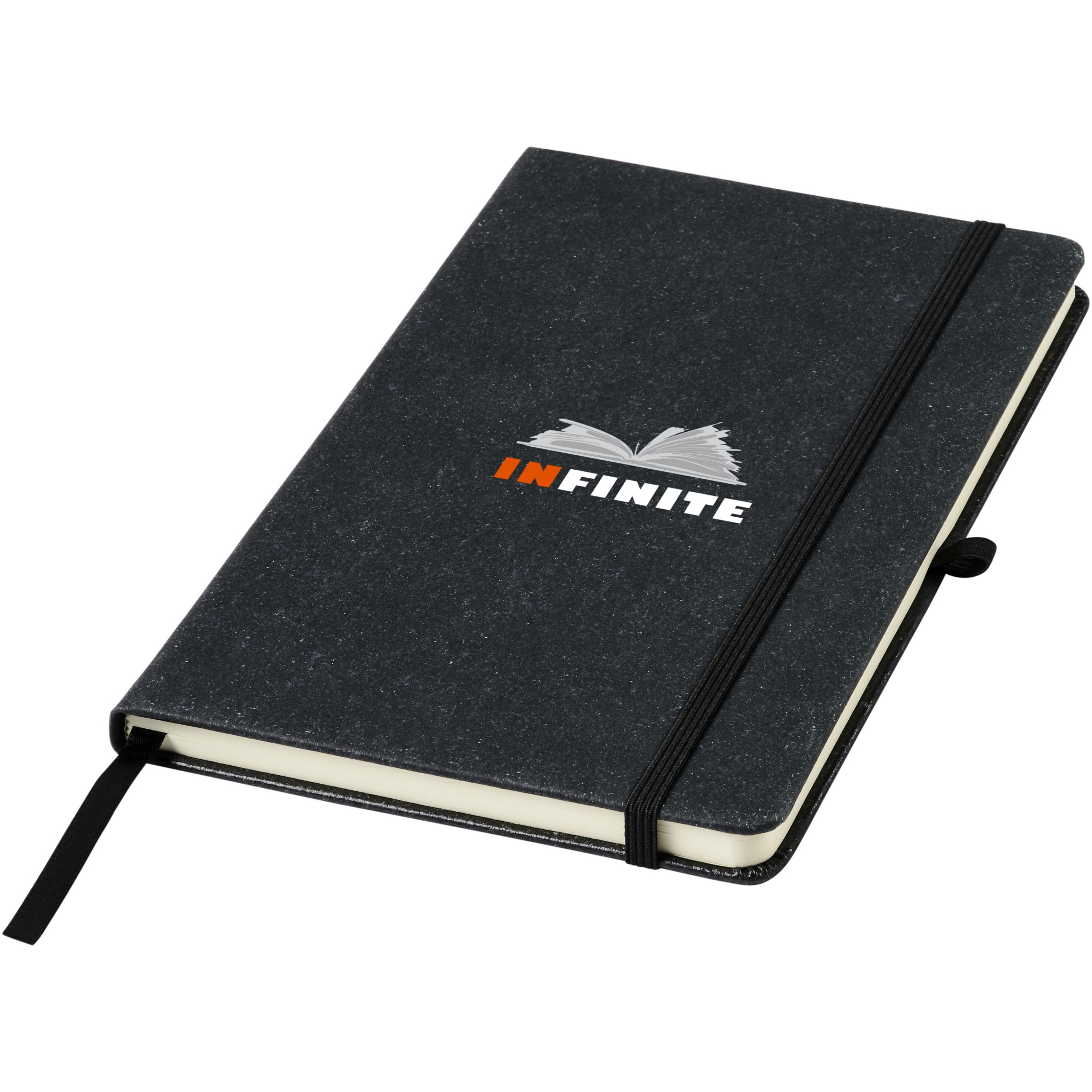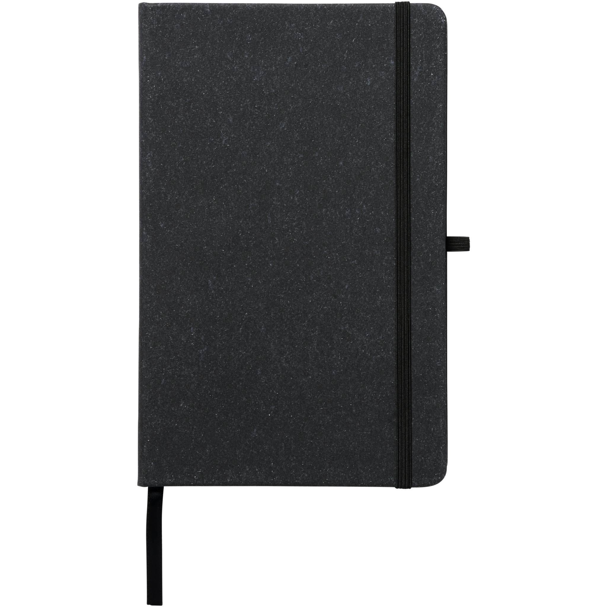 A5 suuruses teatmemärkmik kaanega, mis on valmistatud nahajääkidest. Sisaldab elastset riba, pliiatsi aasat, lindimarkerit ja 80 lehte, 80 g/m² joonelist paberit.