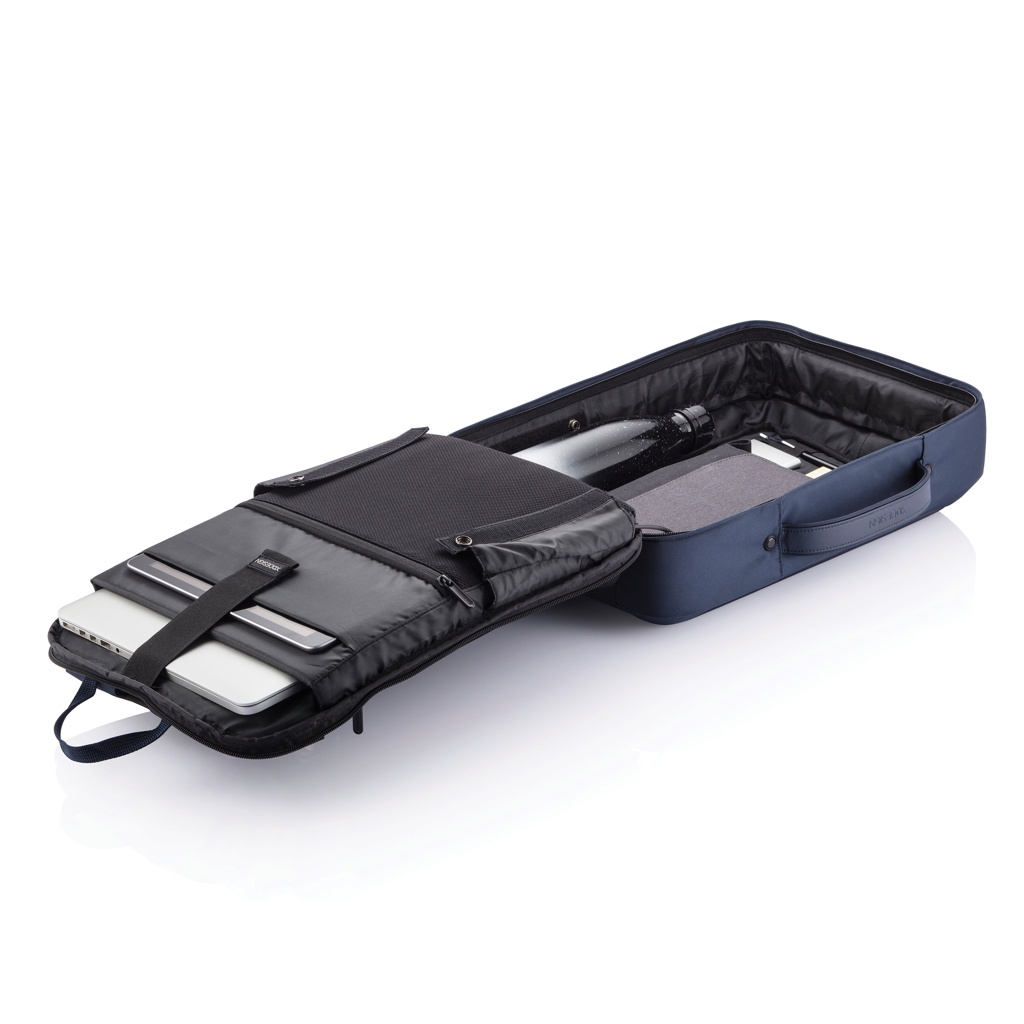 Meie uusima põlvkonna vargusvastase seljakoti ja kohvriga Bobby hoidke oma asju turvaliselt ja muutke oma edasi-tagasi sõitmine veelgi mugavamaks. See on valmistatud kvaliteetsest polüestrist ja sellel on peegeldavad prindid, mis tagavad teie ööohutuse. Sees on polsterdatud sahtlid 15,6-tollise sülearvuti, kuni 10-tollise tahvelarvuti ja kogu muu tarviku jaoks. Sisseehitatud metallraam hoiab teie asjad turvaliselt ja seljakoti vormis. Lülituge hõlpsalt seljakotilt portfelli kandmisele. Parempoolses rihmas oleva integreeritud tsingisulamist lukuga lukustage oma kott kiiresti mis tahes fikseeritud eseme külge. Kaasa arvatud pagasirihm. Registreeritud disain®