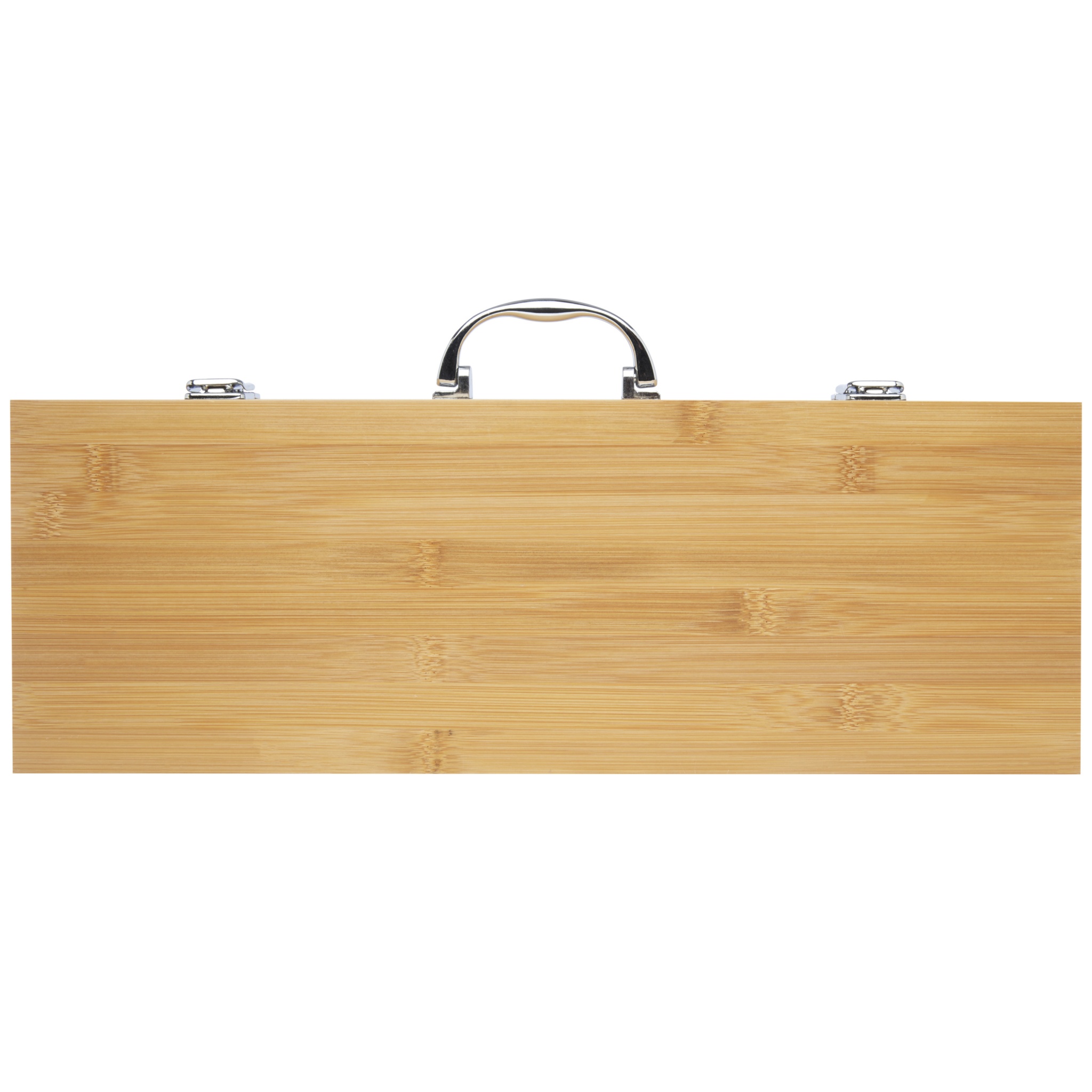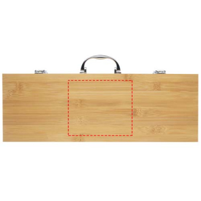 Bambusest 5-osaline grillikomplekt labida (40 x 9,5 cm), tangi (34,5 x 6 cm), kahvli (38,5 x 3 cm), noa (38,5 x 3 cm) ja harjaga (38 x 4,3 cm). Komplekt tarnitakse bambusest kinkekarbis (46 x 16,2 x 7,4 cm). Käepidemed ja kinkekarp on valmistatud bambusest, mis on hangitud ja toodetud säästvaid standardeid järgides.