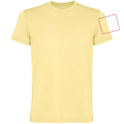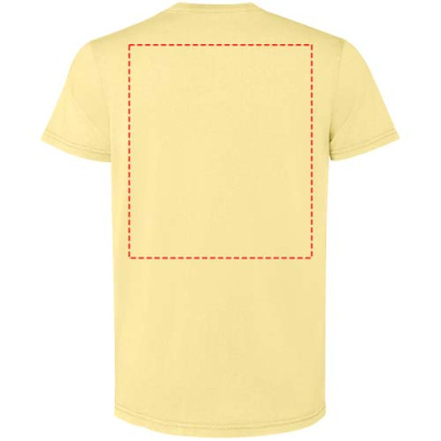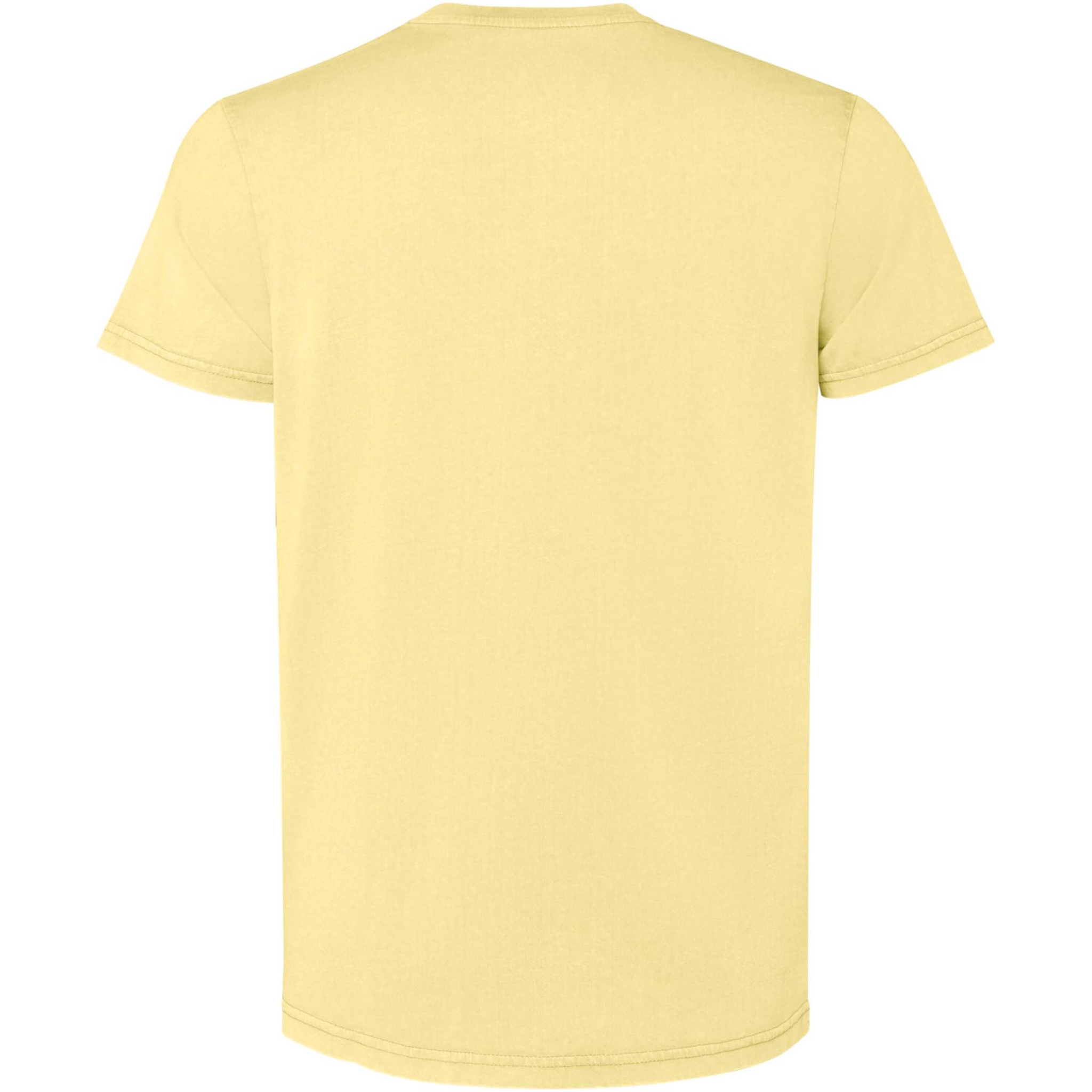 Kollane lühikeste varrukatega meeste T-särk. Happepesu viimistlusega. 1x1 soonikkoes ümara kaelusega. Toon-toonis katteõmblus.