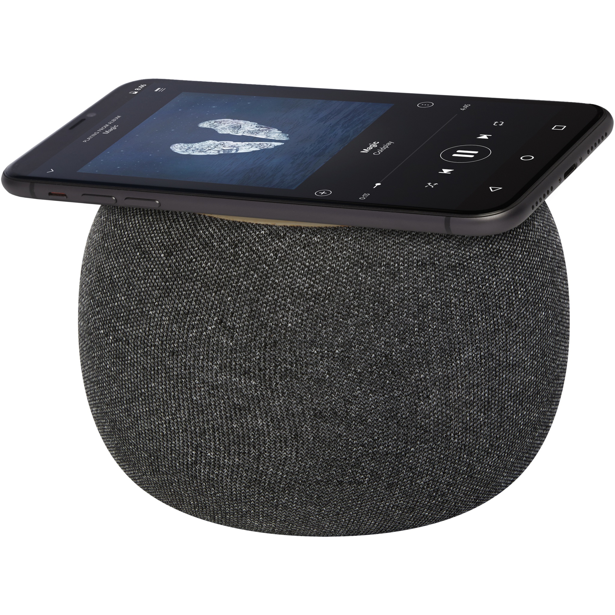 Ecofiber bambusest/RPET Bluetooth® kõlar ja juhtmevaba laadimisalus, Naturaalne / hall