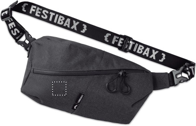 Festibax® Basic. 300D 2-tooniline katioonvärvitud polüester lukuga, eemaldatava ja reguleeritava rihmaga. Kaasa arvatud vargusvastane sahtel ees ja taga. Ülim festivalikott.