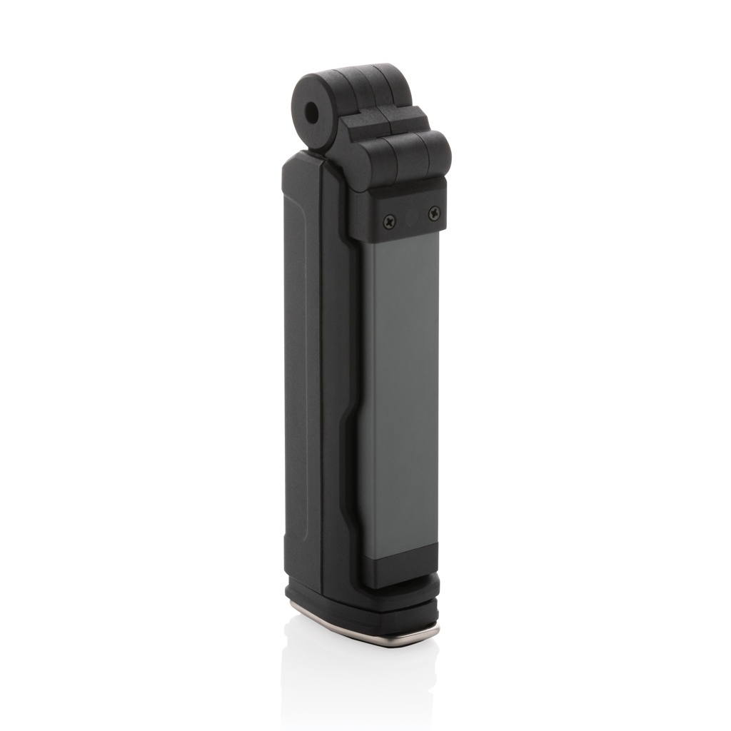 Funktsionaalsus ja disain tulevad kokku selles taaslaetavas suure jõudlusega töövalgustis, mis on valmistatud RCS-sertifikaadiga taaskasutatud ABS-plastist. Taaskasutatud kogusisu: 25% toote kogumassist. RCS-sertifikaat tagab taaskasutatud materjalide täielikult sertifitseeritud tarneahela. Vihmakindel töötuli kasutab taaslaetavat A-klassi 2000 mah liitiumakut, nii et patareisid pole vaja vahetada. Laadige lihtsalt oma USB-pesa ja kaasasoleva laadimisaluse kaudu uuesti. Töövalgustiga on kaasas 600 luumenine COB valgus ja 200 luumenine LED valgus. 4 režiimiga: LED, COB, COB punane, COB hädaabi vilkumine. Valgust saab täielikult 360 kraadi ümber pöörata. Magnetiga ja konks allääres. C-tüüpi pordiga laadimiseks ja USB A-pordiga mobiilseadmete laadimiseks. Tööaeg ühe laadimisega: 3 tundi.