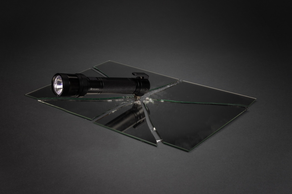 Tugev auto turvatööriist, mis on valmistatud RCS-sertifikaadiga taaskasutatud alumiiniumist ja ABS-ist. Taaskasutatud kogusisaldus: 59% eseme kogumassist. RCS-sertifikaat tagab taaskasutatud materjalide täielikult sertifitseeritud tarneahela. Taskulambis kasutatakse korduvlaetavat A-klassi 2000 mah liitiumakut, nii et patareisid pole vaja vahetada. Laadige lihtsalt oma USB-pesa kaudu uuesti. Võimsa 500-luumenilise taskulambiga, mille valgusvihk on kuni 100 meetrit. LED-tulel on 4 režiimi (100%, 50%, 30% ja vilkuv) Punase hädaolukorra LED-tulega, mis võib töötada 3 režiimis (kiire välk, aeglane välk ja SOS). Integreeritud rihmalõikuri ja aknahaamriga. Magnetiga magnetpinnale kinnitamiseks. Tööaeg ühe laadimisega: 2 tundi. IPX 4 veekindel.