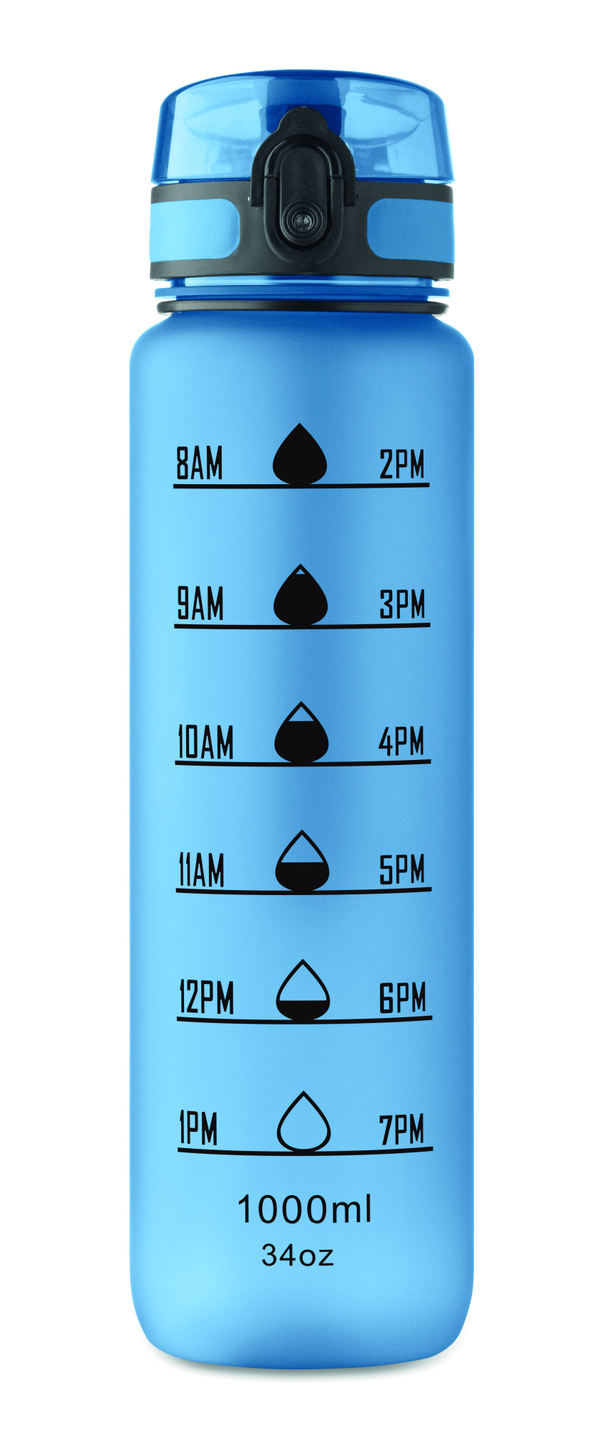 RPET-materjalist spordi veepudel, motiveerivad ajamärgid, ühe käega avatav klapiga kaas, turvalukk ja kanderihm. Lekkevaba. Maht: 1 l.
