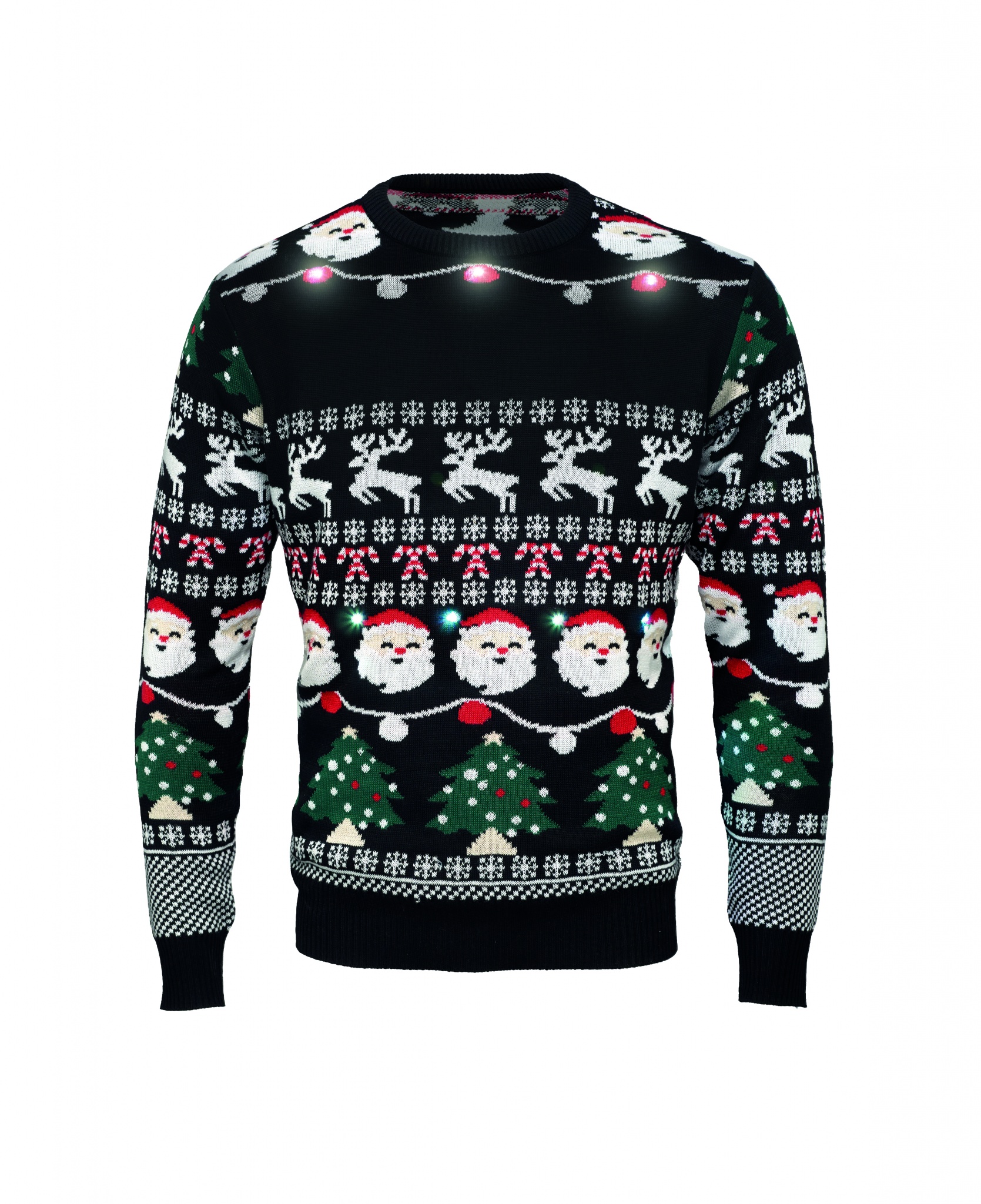Jõulu sümboolikaga logodega LED kampsun S/M, Must