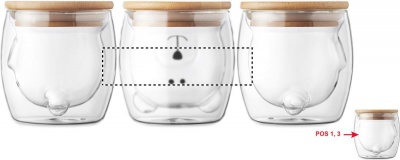 Kaheseinaline borosilikaatklaasist kruus karu näokujunduse ja bambusest kaanega. Mahutavus: 260 ml. Bambus on looduslik toode, ühe eseme värvis ja suuruses võib esineda väikesi erinevusi, mis võivad mõjutada lõppviimistlust.