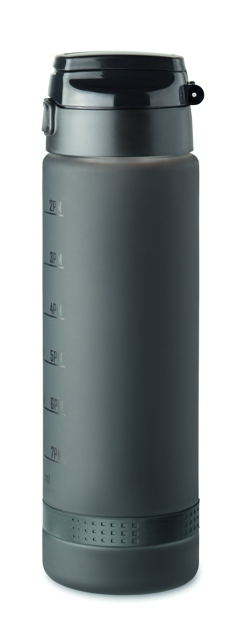 Spordiveepudel RPET, motivatsiooniaja märgistus, ühe käega avatav klappkaan, turvalukk ja kanderihm. Mahutavus: 1L.