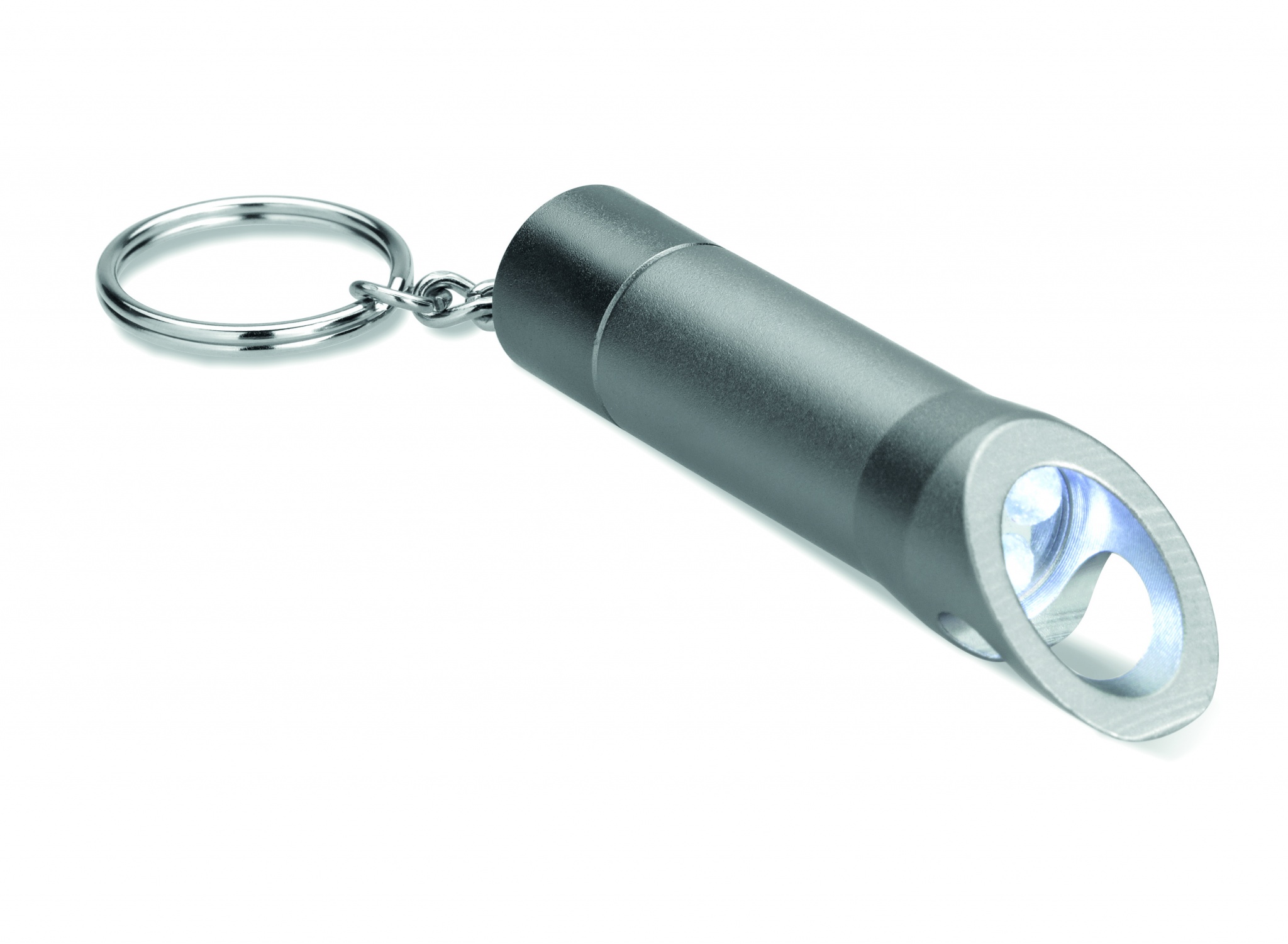 Metallist LED taskulambi võtmehoidja pudeliavajaga. Kaasas 3 akut.