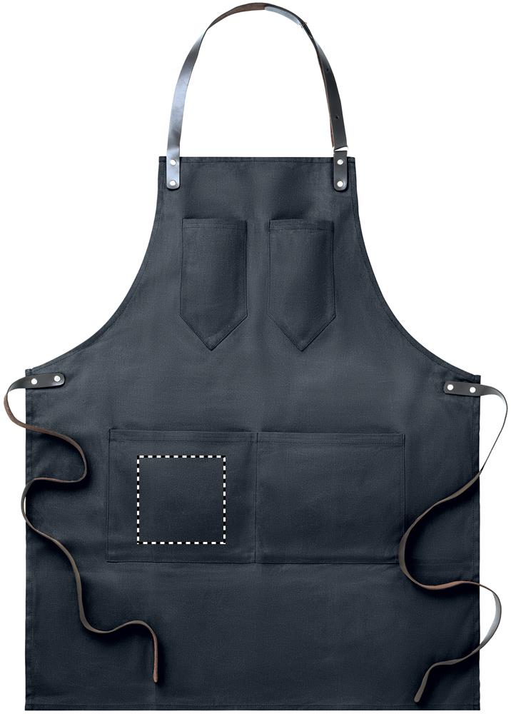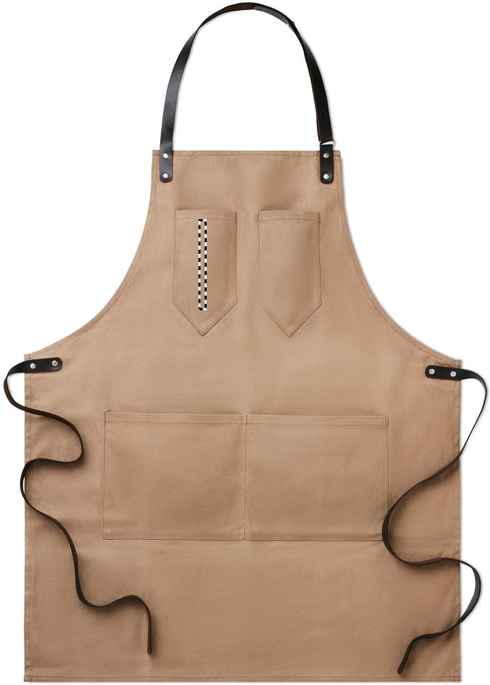Vahatatud lõuendist põll nahkdetailidega, reguleeritav rihm 2 rinnatasku ja 1 suure madala tasapinnaga taskuga. 12 untsi vahatatud lõuend.