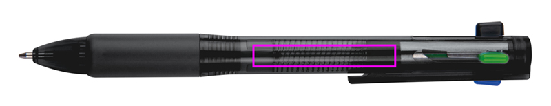 Plastikust pastapliiats 4 värvilise kirjutusmiiniga (sinine, must, punane ja roheline). Teie logo trükitakse klipi alla.