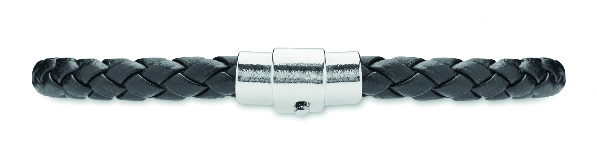 Punutud kunstnahast manseti käevõru poleeritud terasest riistvaraga. Push-lock lukk. Randme ümbermõõt: 18 cm.