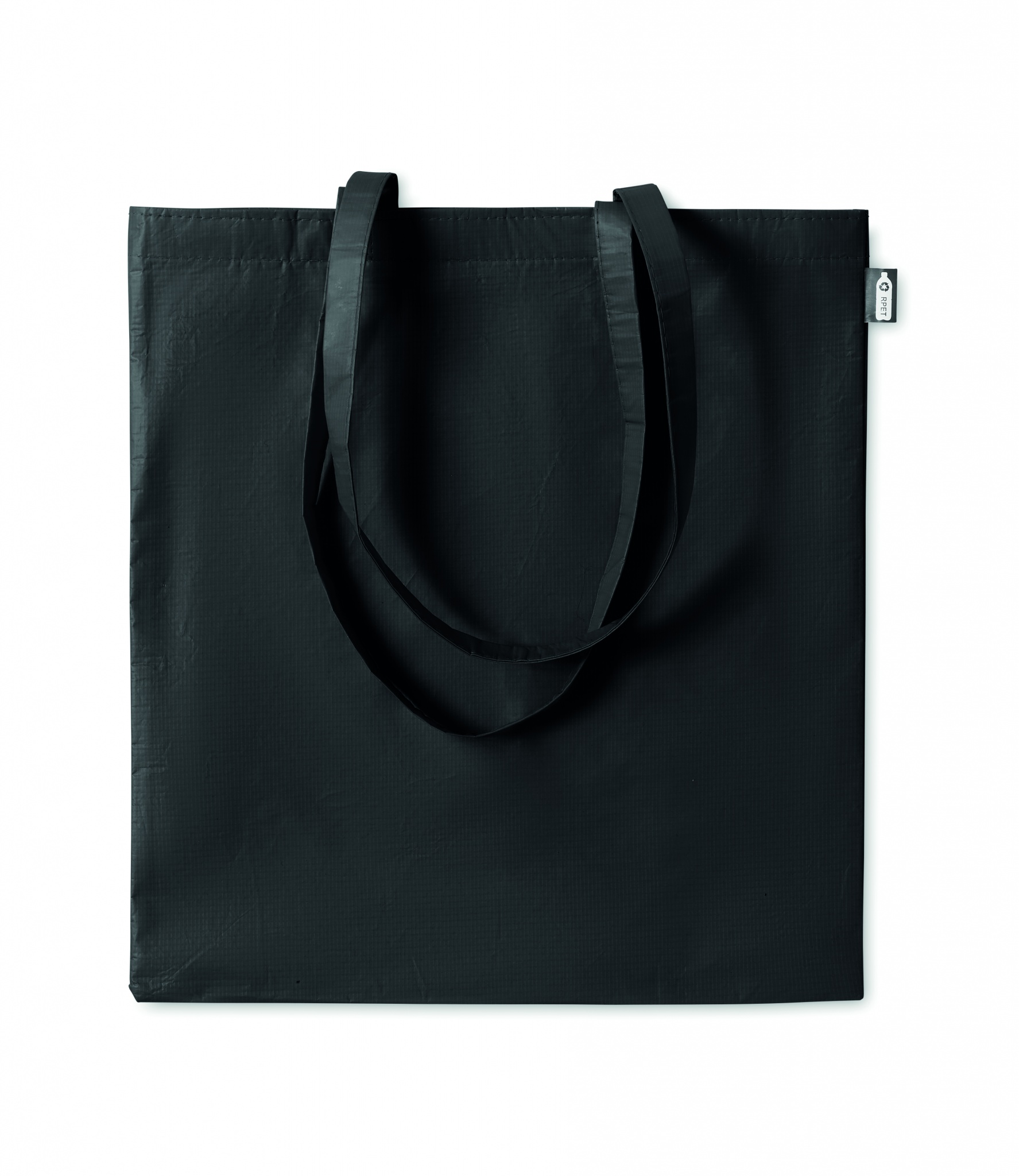 RPET lamineeritud lausriidest ostukott pikkade sangadega. 100 gr/m².