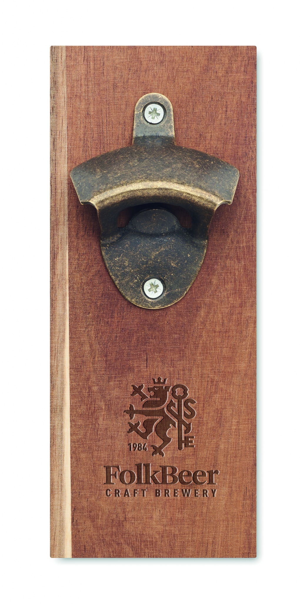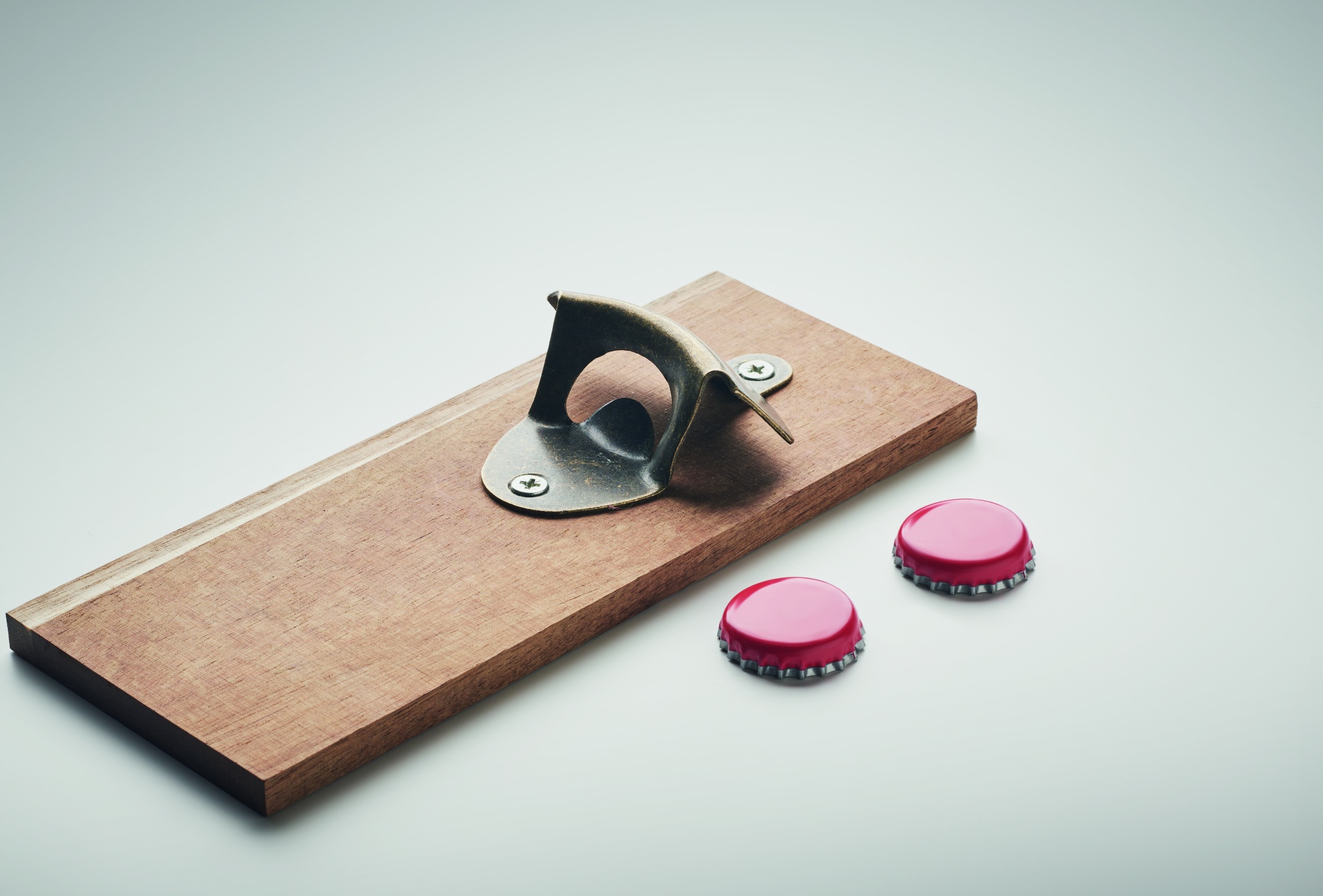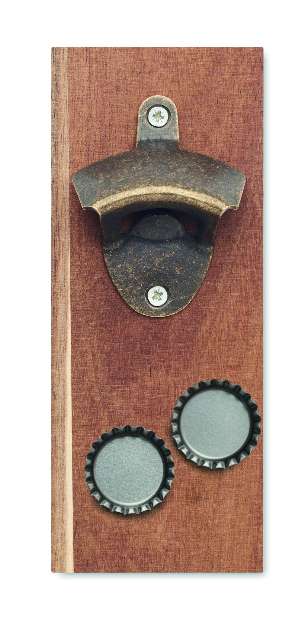 Seinale kinnitatav akaatsiapuidust ja rauast pudeliavaja. Sellel on võimas magnet korkide püüdmiseks ja külmikusse, grillile jne paigaldamiseks.
