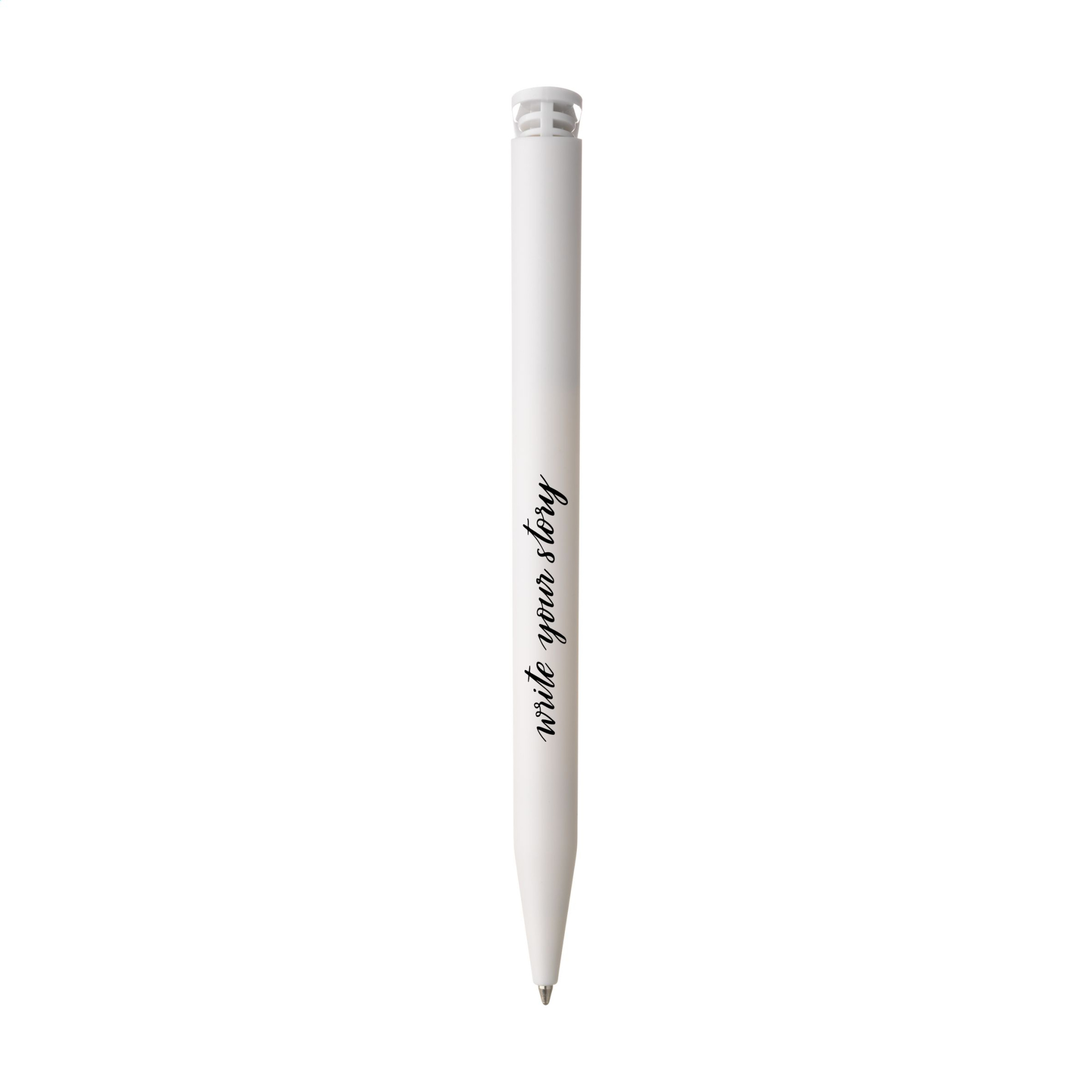 Sinise tindiga pastapliiats kaubamärgilt Senator®. Matt tünn on valmistatud PLA granulaadist suhkruroo baasil ja on seetõttu biolagunev. Pliiats on toodetud kasutades rohelist energiat ja ISO 14001 keskkonnastandardi järgi sertifitseeritud protsesse. Suure klambri/nupuga. Valmistatud Saksamaal.