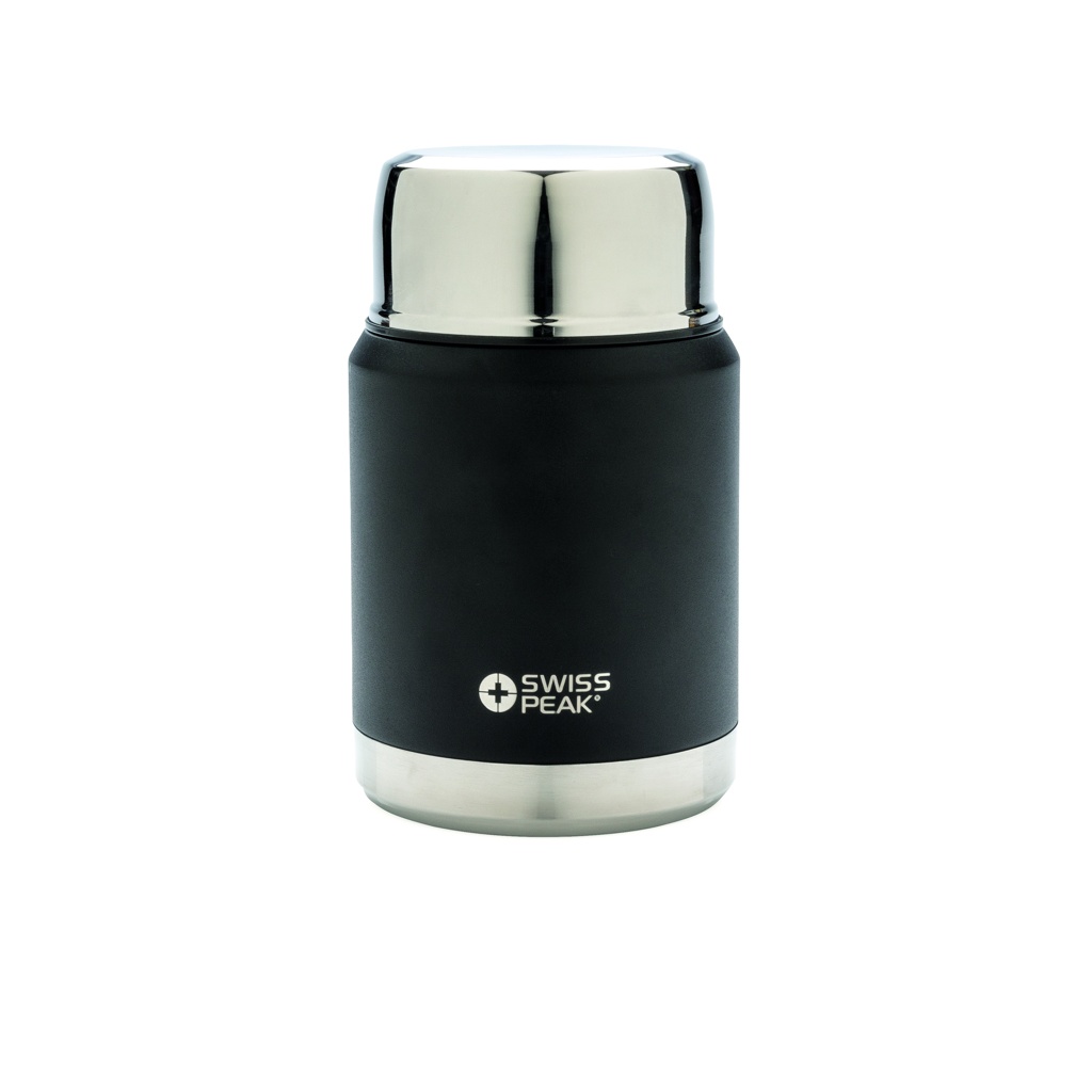 Swiss Peak Elite seeriad on vaakum-isolatsiooni ja topeltseinaga 18/8 klassi roostevabast terasest. Pulbervärvitud must värv on ehitatud kestma! Siin pole pleekimist ega pragunemist! Sisesein on kaetud vasega ülima juhtivuse tagamiseks, et hoida joogid kuumana 8 tundi ja külmana 24 tundi. See toidunõu hoiab teie toidu kuumana või külmana kogu päeva! Kaasas on 18/8 SS lusikas. Ainult käsipesu. Lekkekindel. Sisu 500 ml.