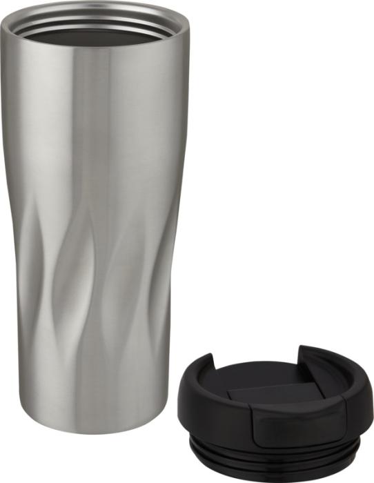 Topeltseintega termoskruus keeratava lekkekindla kaanega, millel on laineline geomeetriline disain. 18/8 roostevaba teras hoiab joogid kuumana või külmana mitu tundi. BPA-vaba ja testitud ja heaks kiidetud Saksamaa toiduohutuse seaduste (LFGB) alusel ning ftalaatide sisalduse suhtes testitud vastavalt REACH-määrustele. Maht 450 ml. Soovitatav käsipesu. Taaskasutatud papist kinkekarbis.