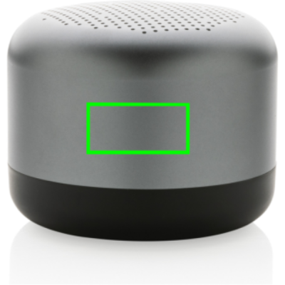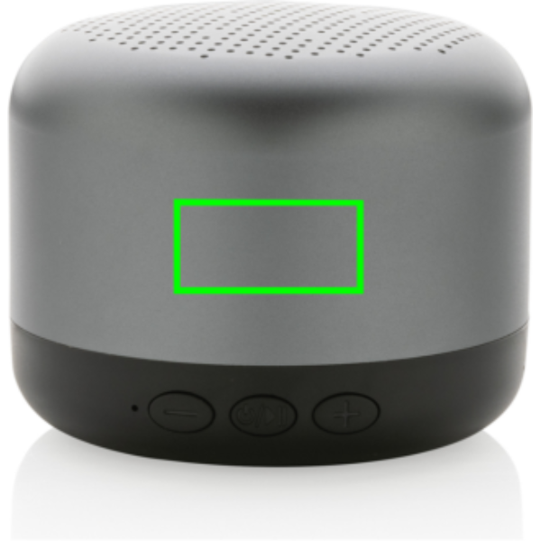 5 W juhtmevaba kõlar, mis on valmistatud RCS (Recycled Claim Standard) sertifitseeritud taaskasutatud alumiiniumist ja ABS-ist. Taaskasutatud kogusisaldus: 35% eseme kogukaalust. RCS-sertifikaat tagab taaskasutatud materjalide täielikult sertifitseeritud tarneahela. Alumiinium ei kaota ringlussevõtu käigus oma omadusi ja seda saab ringlusse võtta lõputult. Sisaldab taaskasutatud C-tüüpi laadimiskaablit, mis on valmistatud RCS-sertifikaadiga taaskasutatud alumiiniumist, TPE-st ja PET-st. Pakitud FSC® segupakendisse. 600 mah aku võimaldab mängida kuni 4 tundi ja seda saab täielikult laadida 2 tunniga. BT 5.0-ga sujuvaks ühenduseks kuni 10 meetrit.