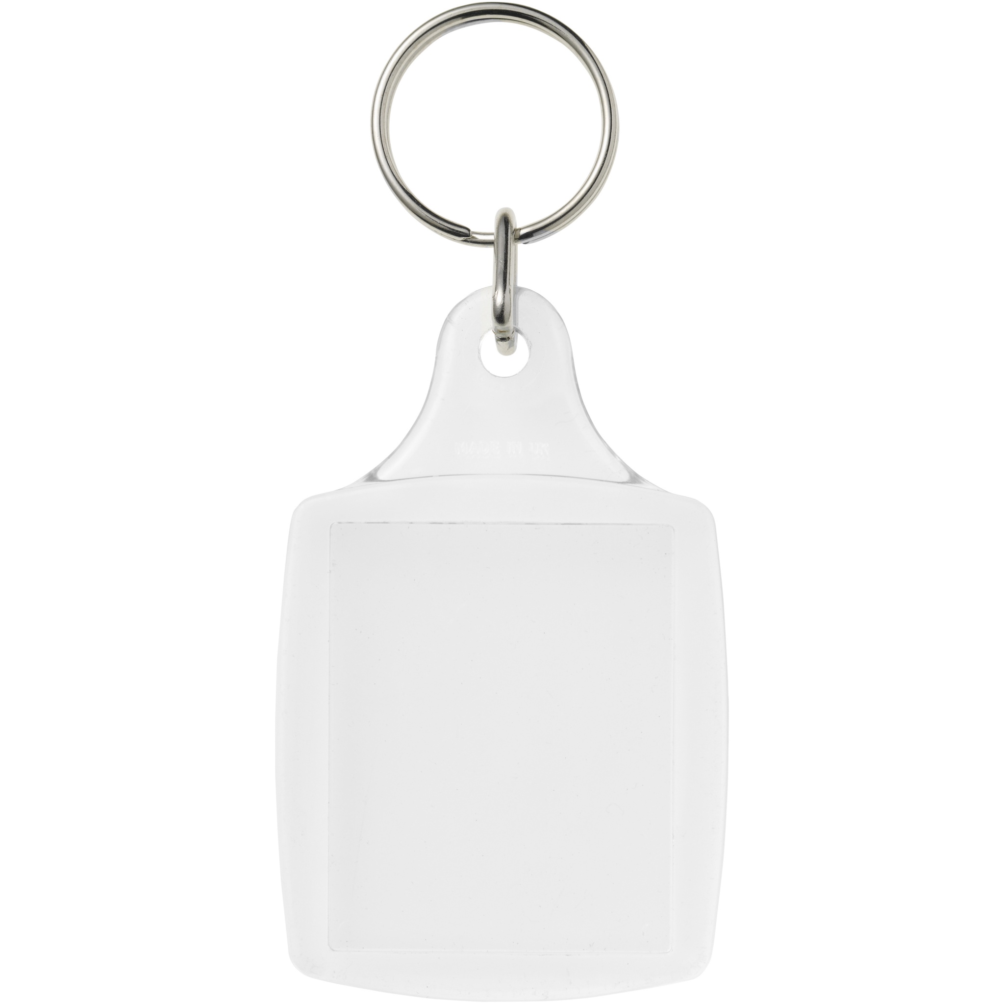 Läbipaistev A5 võtmehoidja metallist poolitatud võtmehoidjaga. Mõeldud kandma pabervahelehte või passifotot. Trükilehe mõõdud: 4,5 cm x 3,5 cm.