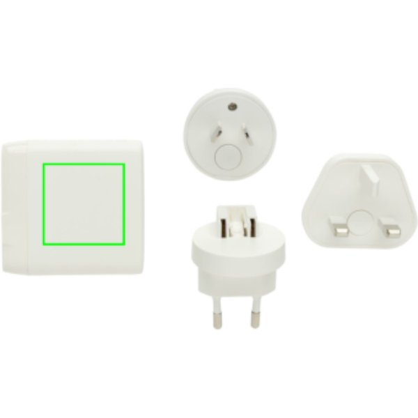 Logo trade meene pilt: TravelCharge Pro RCS plastikust reisilaadija USB C-ga