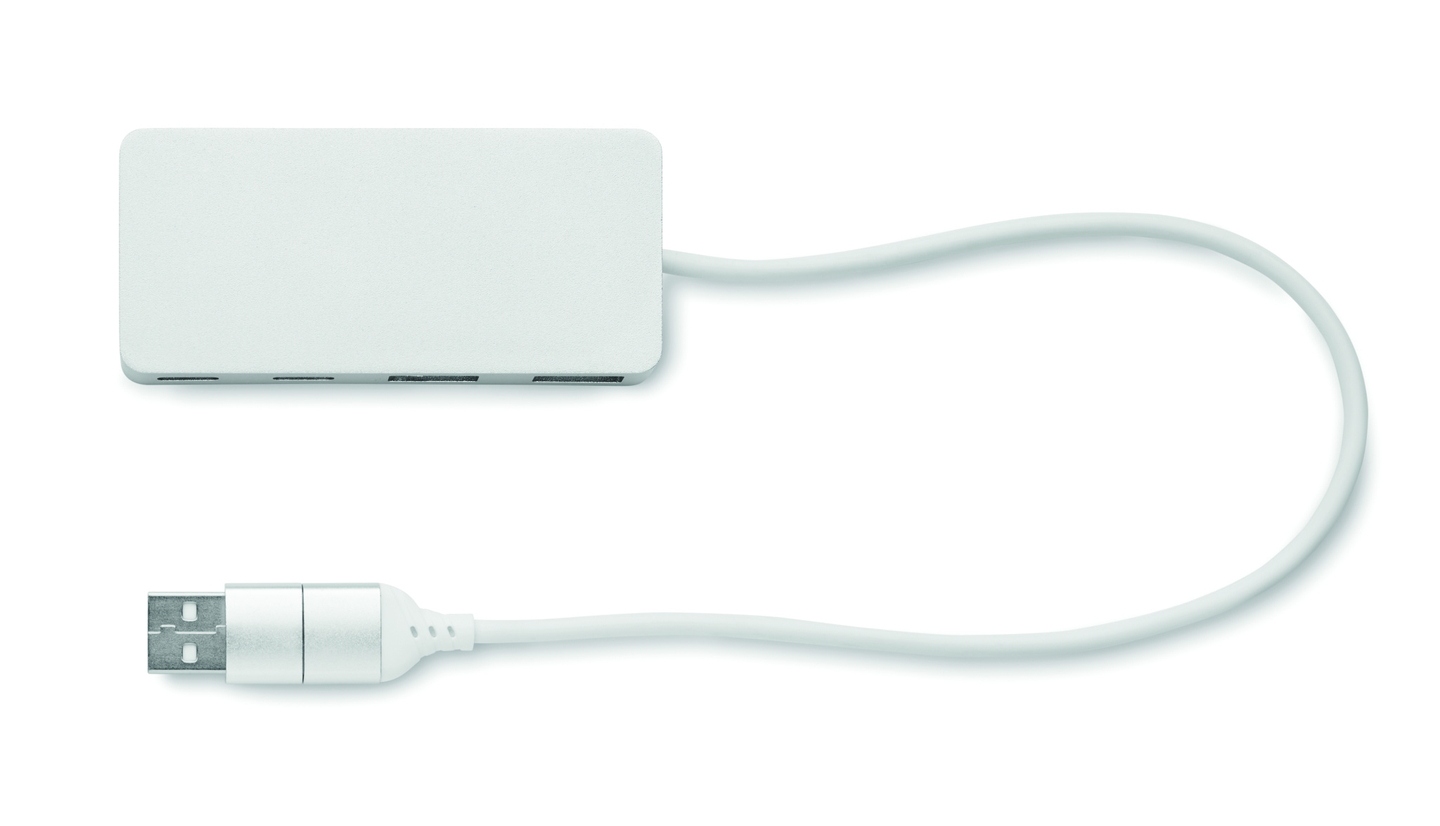 4-pordiline USB-jaotur taaskasutatud alumiiniumist korpuses ja pähkel ülaosaga. Väljund: 2 x Type-A ja 2 x Type-C. Sisend: 2-in-1 Type-C ja Type-A. Kaabli pikkus: 27,5 cm.